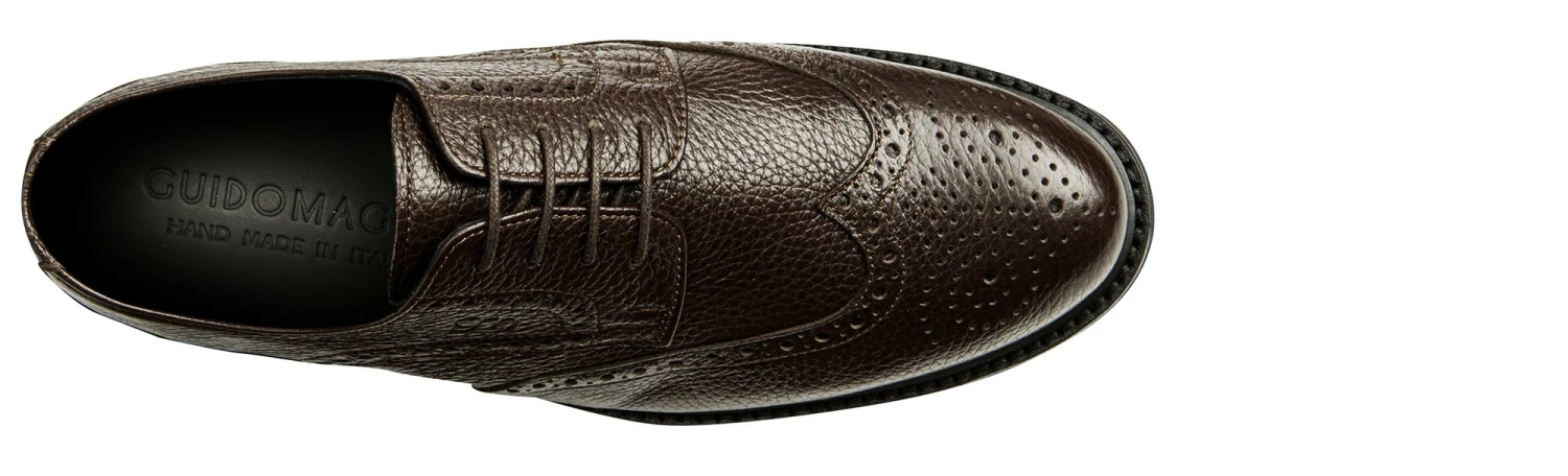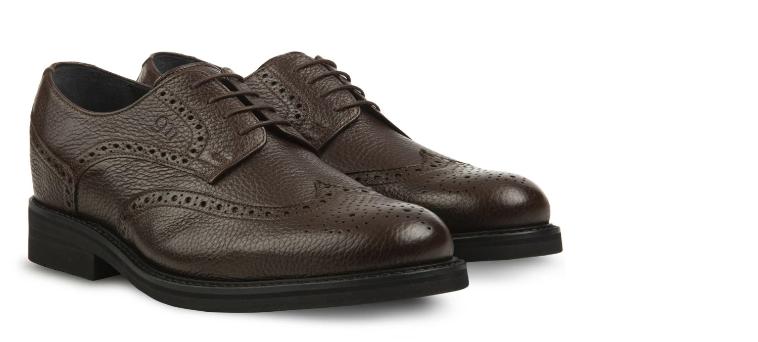 An elevator derby shoe with upper in fine deerskin leather: a precious type of leather, characterized by a natural softness and breathability, flexible and highly durable. In brown, with a super comfortable Vibram rubber sole, it adds up to 3.1″ (8 cm) in total comfort and discretion. Handmade in Italy.