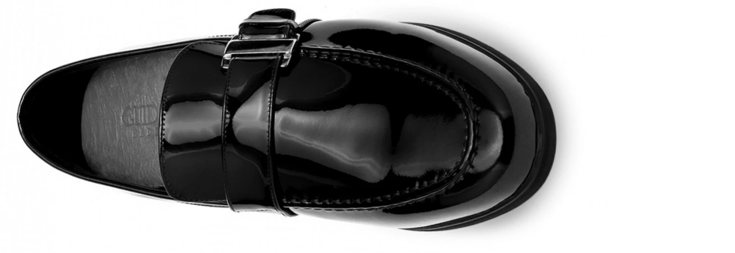 - Upper in calf black patent leather