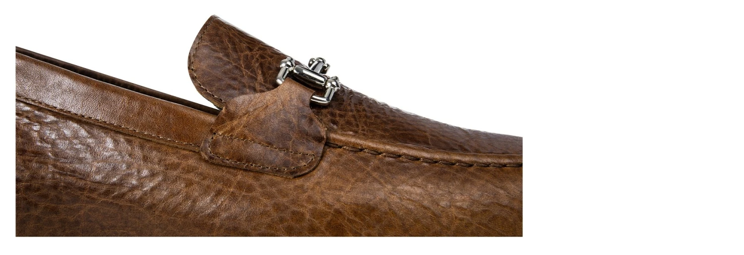 Casual chic: the Belmondo elevator loafer is made of vegetable-tanned full grain leather featuring a deep dark brown colour, and tone-on-tone stiched leather sole with anti slip rubber and silver clamp.