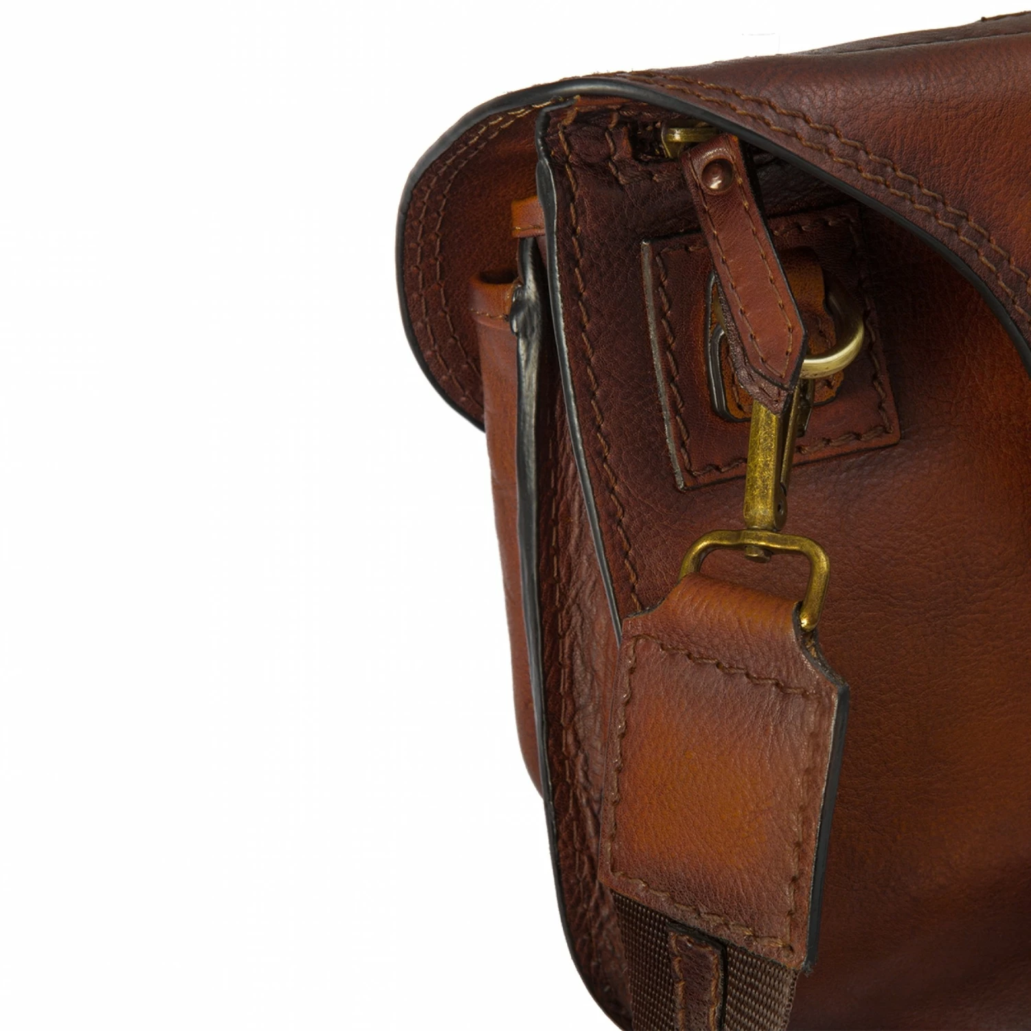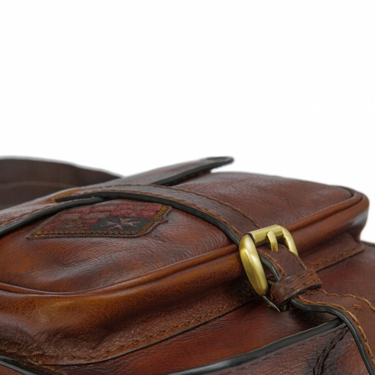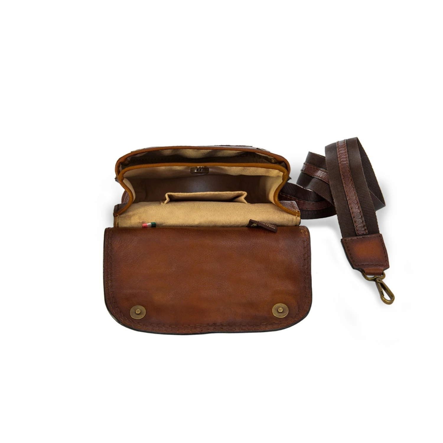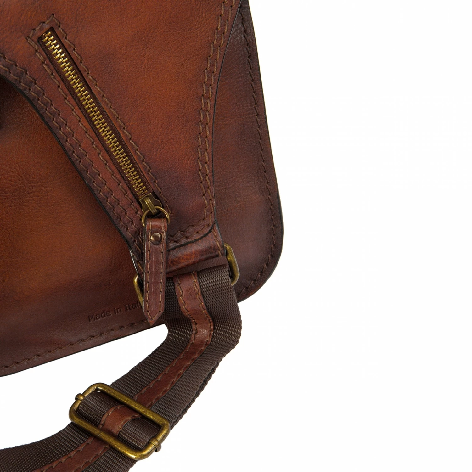 Shoulder backpack made of dark brown vegetable tanned leather, naturally aged by using an ancient and unique technique. With a single cross body shoulder strap, Bisaccia is the perfect fusion of refinement and functionality, designed to satisfy every need.