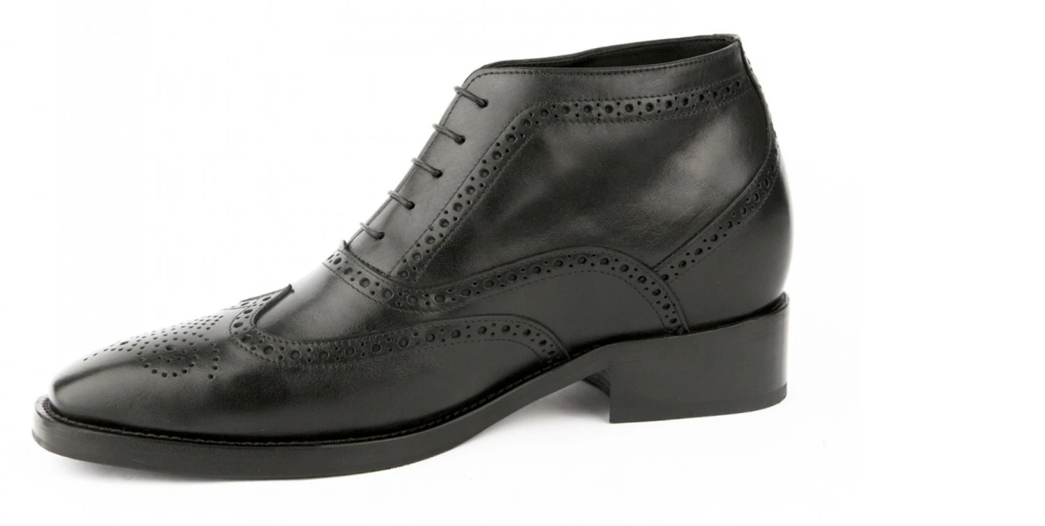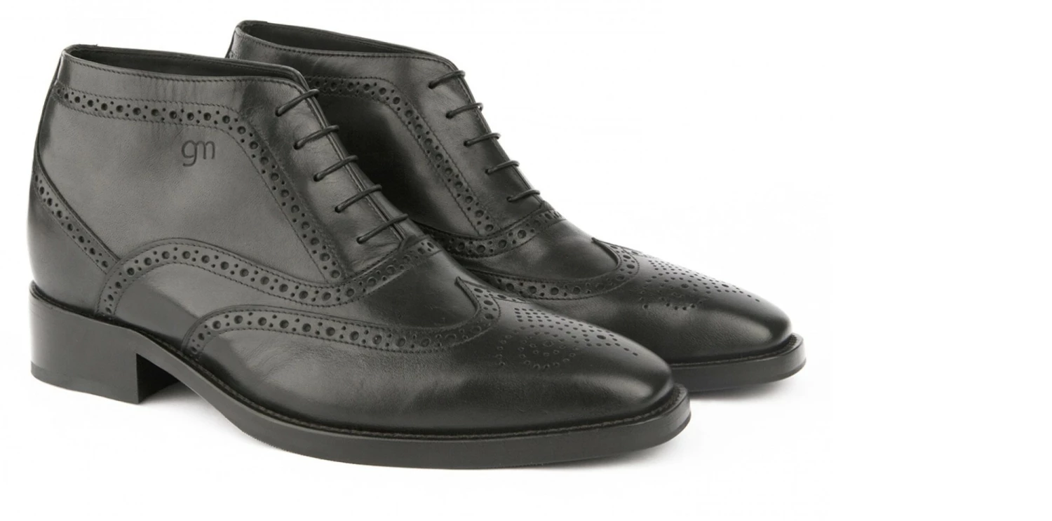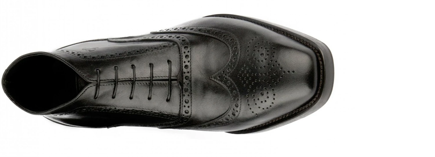 Elegant ankle boots featuring a black upper in full grain leather with a brogue wingtip design, punched by hand. The comfortable inner lining is made of soft goatskin. The outsole is made of 100% natural leather, handcrafted, with anti-slip. The black laces are waxed. The insole and midsole are made of genuine Italian leather.
