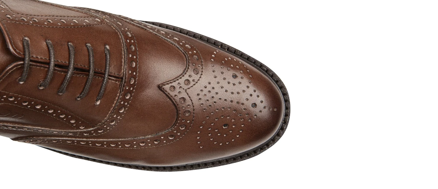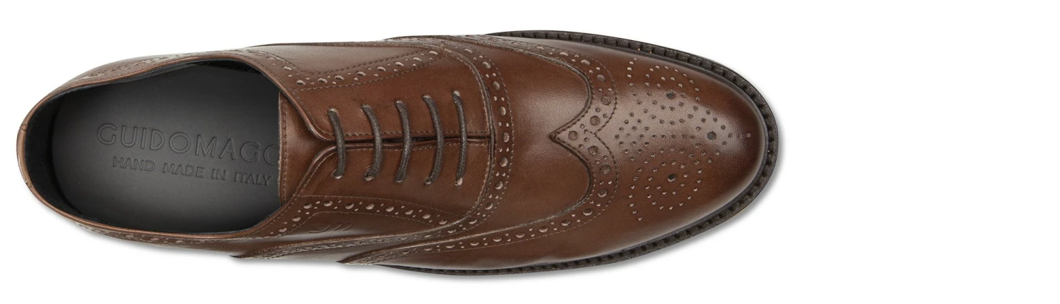 An elevator Francesina from the new GuidoMaggi collection, embellished by the English brogue, dovetail and flower on the tip. The stitching along the upper is expertly handcrafted to give craftsmanship and value to an iconic model that can’t be missing from the wardrobe of the true contemporary gentleman. The elevator shoe is in leather, with a sophisticated shade of walnut brown. Extremely elegant, they are perfect to complete and enhance both casual and more formal looks. Featuring a leather sole with a lifting system adding up to 3.1″ of extra height. 100% Made in Italy.