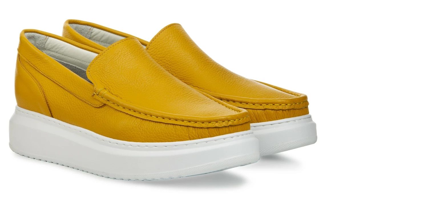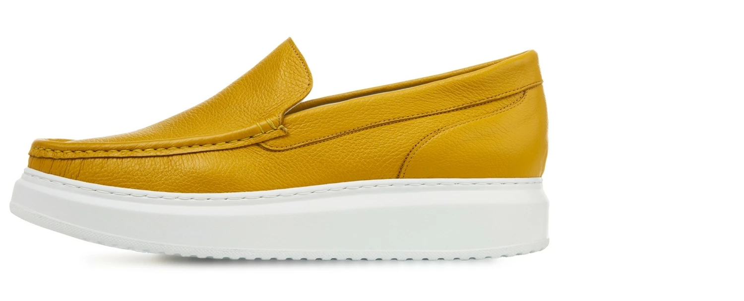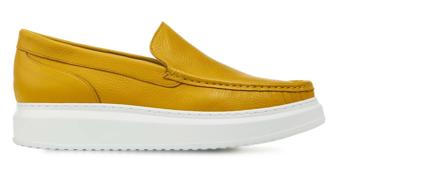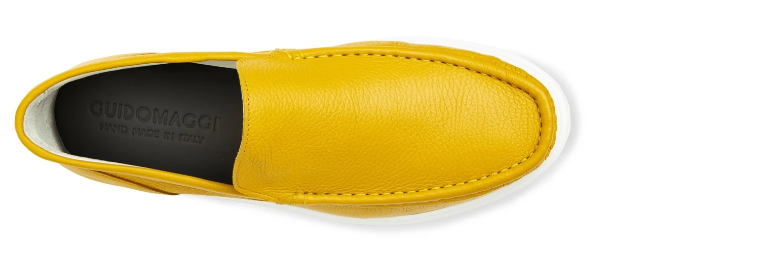 In this hybrid slip on loafer from the new GuidoMaggi collection, innovation and style walk hand in hand. It’s an exclusive reinterpretation of the plain model resting on a sneaker’s sole, combining comfort and elegance in one shoe. Upper in fine deerskin leather and classic tubular seams. Ideal for all seasonal casual chic outfits, this shoe adds up to 2.75″ (7 cm) of extra height in total comfort and discretion. Handmade in Italy.
