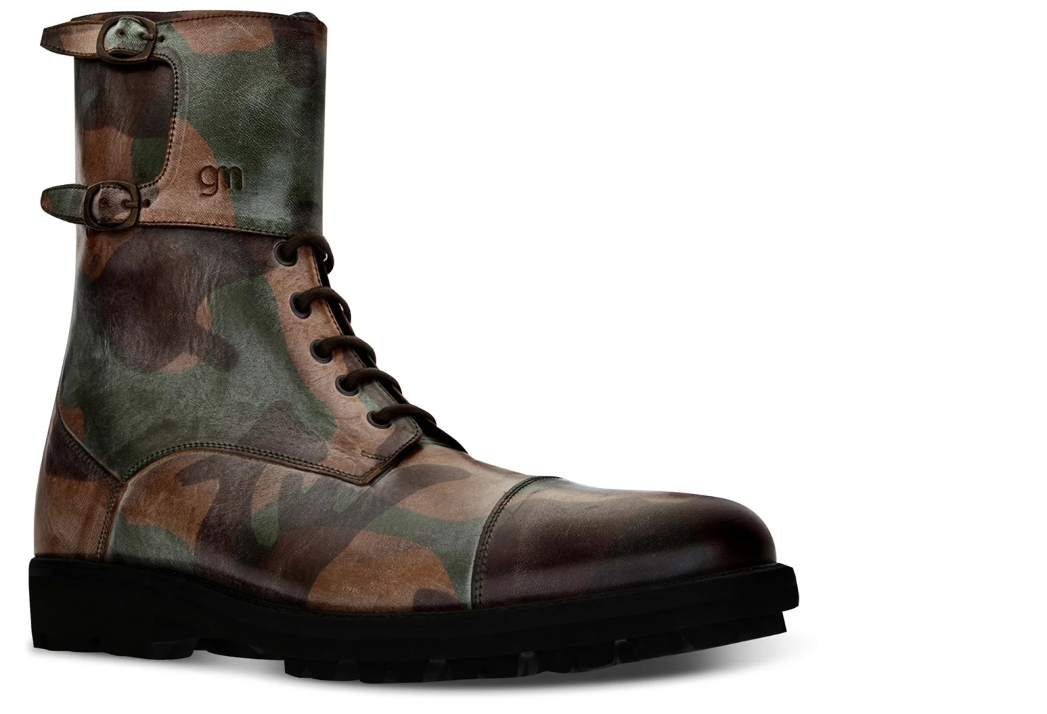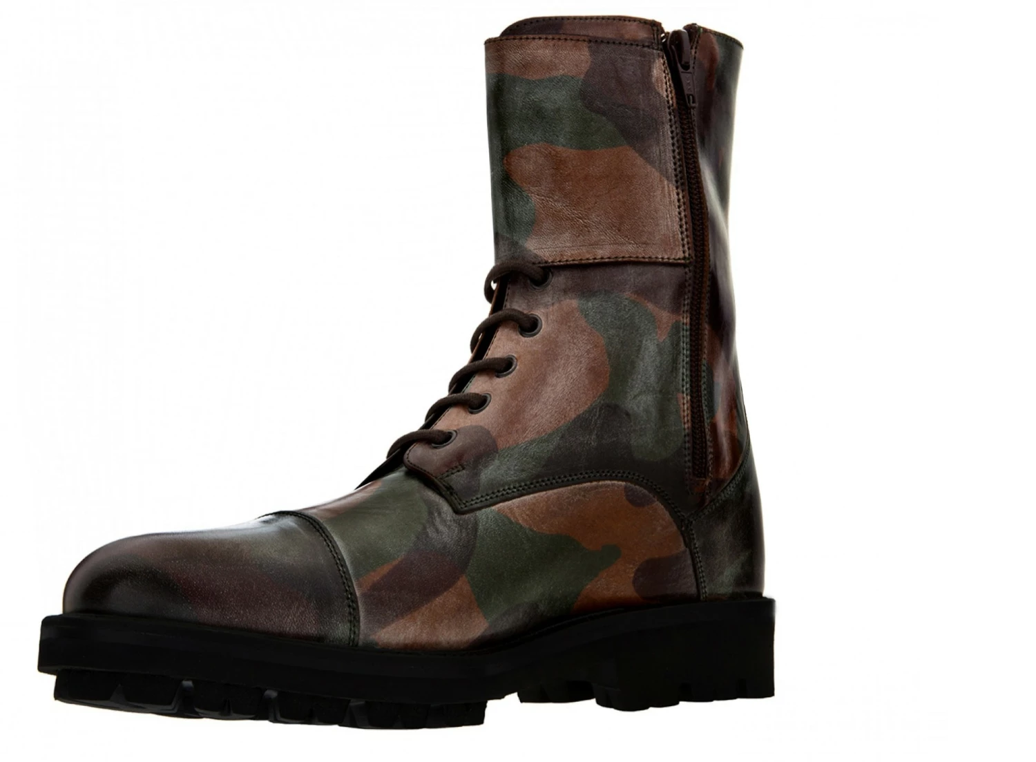 Upper in full grain camouflage leather vegetable tanned. Lining in soft goatskin. Insole and midsole in genuine leather. Cotton waxed shoe laces. Handcrafted, anti-slip rubber sole. Height increase: 2.4 in(6cm), 2.75 in(7cm), 3.1 in(8cm) or 4 in(10cm). Hand Made in Italy