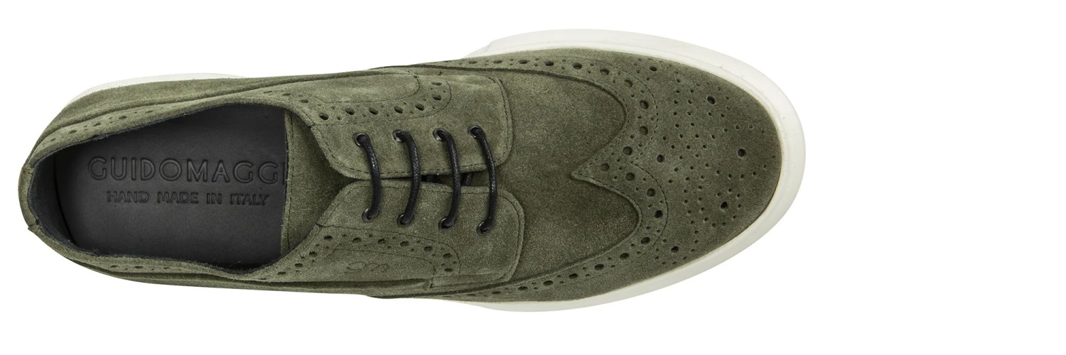 Innovation and tradition meet in the new GuidoMaggi elevator shoes. A unique and exclusive hybrid model combines the dynamism and comfort of a sneaker with the classic elegance of the English brogue.