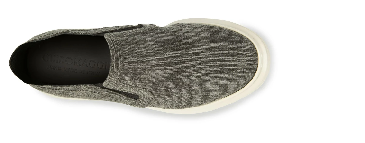 An elevator slip-on ideal for the summer season. Fresh and versatile, it has an upper in pure raffia and a captivating faded black nuance, with side elastics in a darker colour. The breathable and comfortable inner lining is in white calfskin. The exclusive and trendy vintage effect gives an extra touch to a model ideal for any casual chic outfit of the season. The sole is in super-light rubber in shades of grey, totally hand-stitched. Raise your stature up to 2.56″. 100% made in Italy.