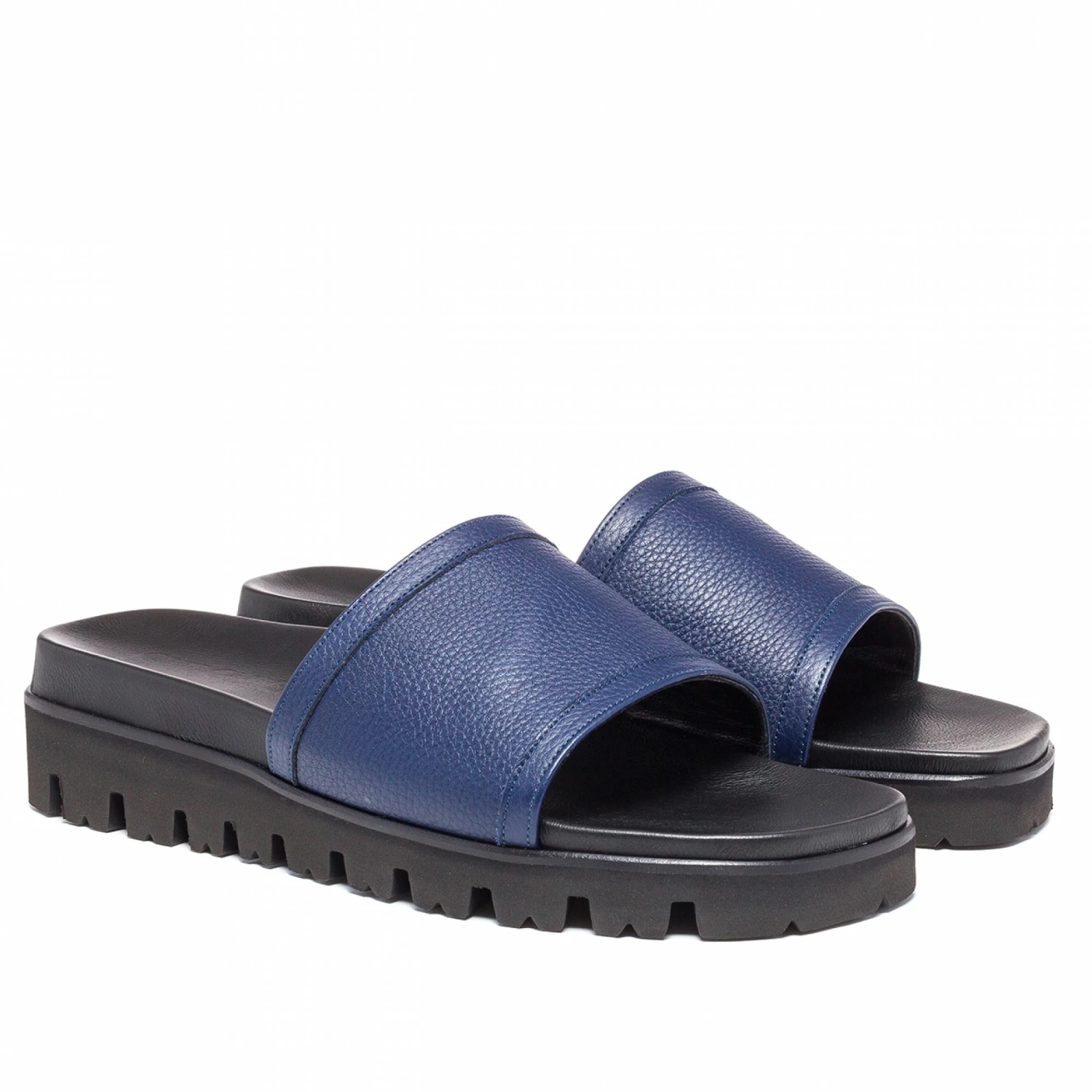 Upper in textured blue full grain leather and comfortable leather-covered cushioning insole. These are the new “Cancun” summer sandals by GuidoMaggi.
