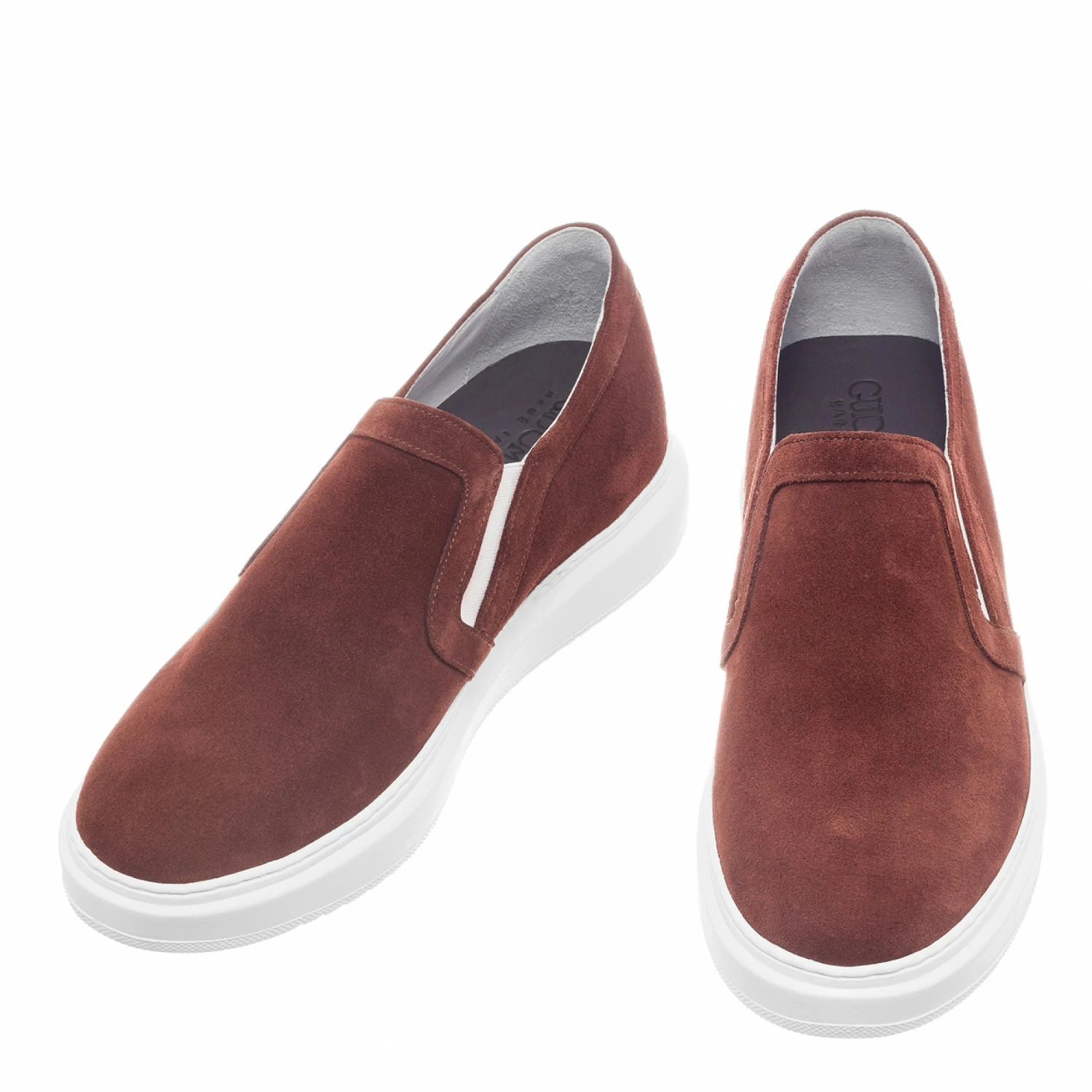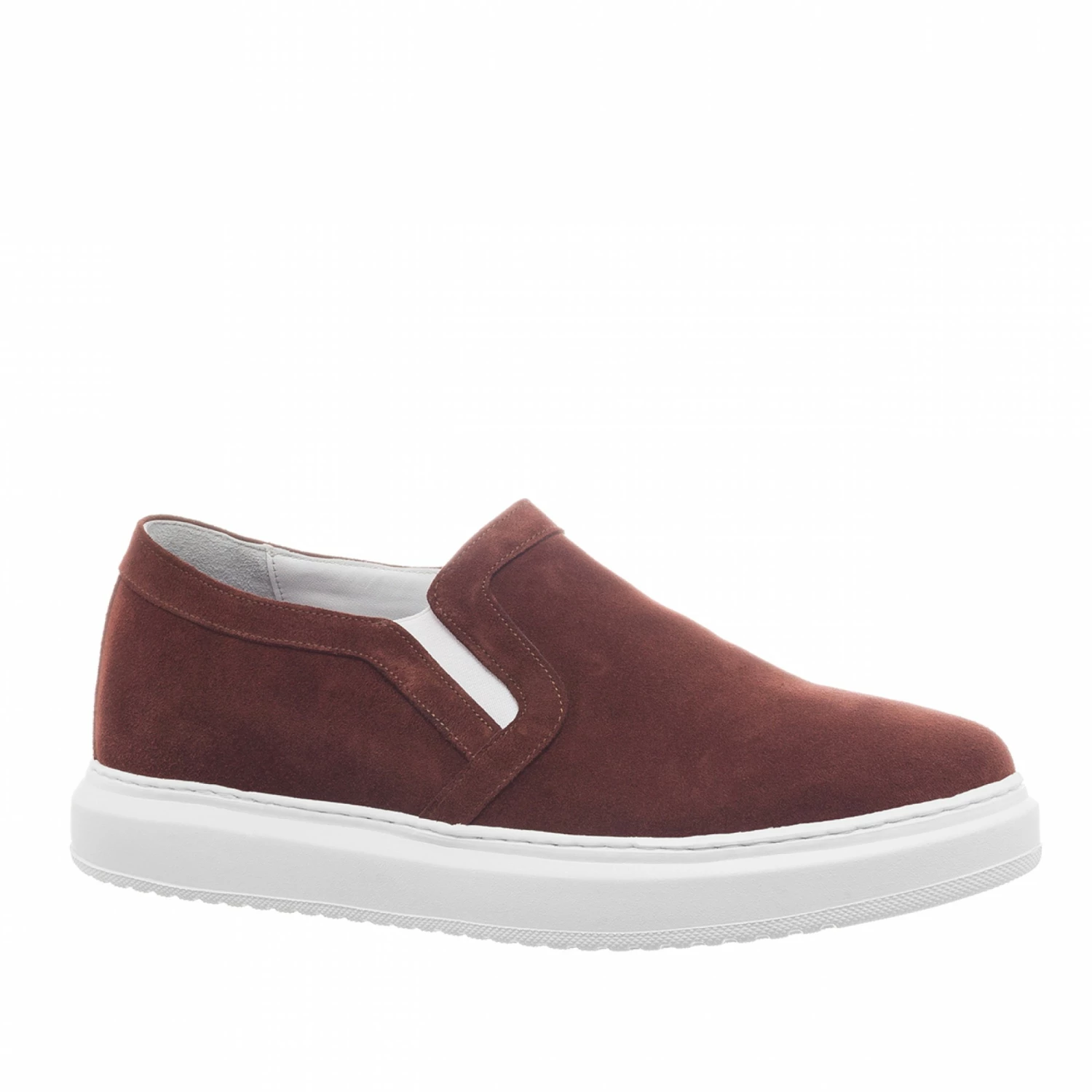 Stylish elevator slip-on with upper in burgundy suede and sole in ultralight rubber.