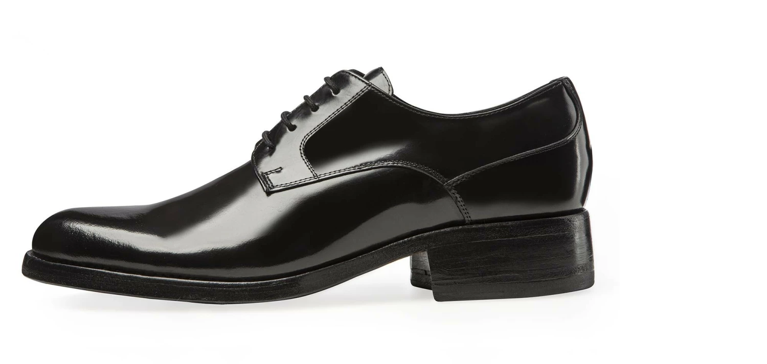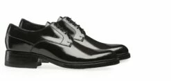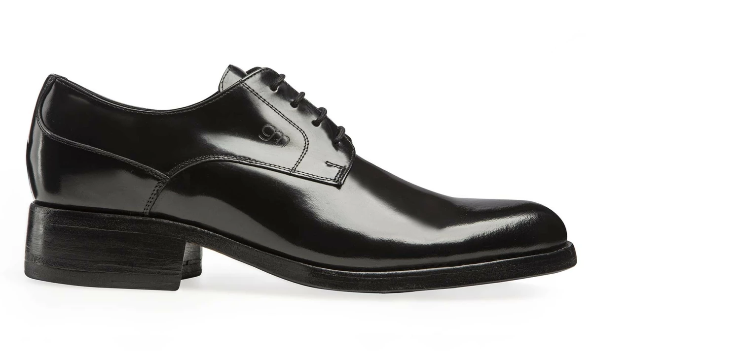 Exclusive elevator derby shoes with upper made of brushed black calfskin and Goodyear stitched leather sole.