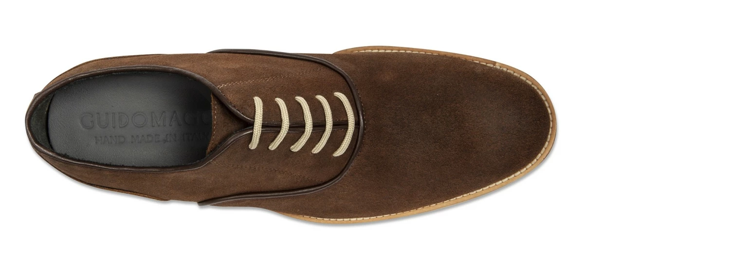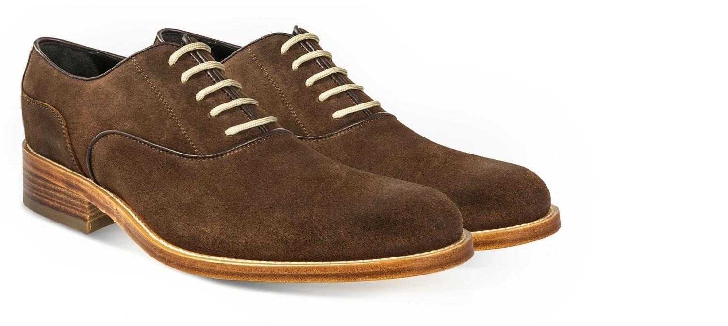 Elegant elevator Oxford shoes handmade in Italy with upper in waxed brown leather and Goodyear stitched sole made of natural leather. A sartorial shoe featuring an invisible inner elevator system from 2.4 (6 cm) up to 3.1 inches (8 cm) depending on needs.