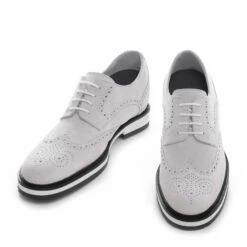 Handcrafted dress shoe with upper in total white suede and two tone sole in ultra-lightweight rubber.