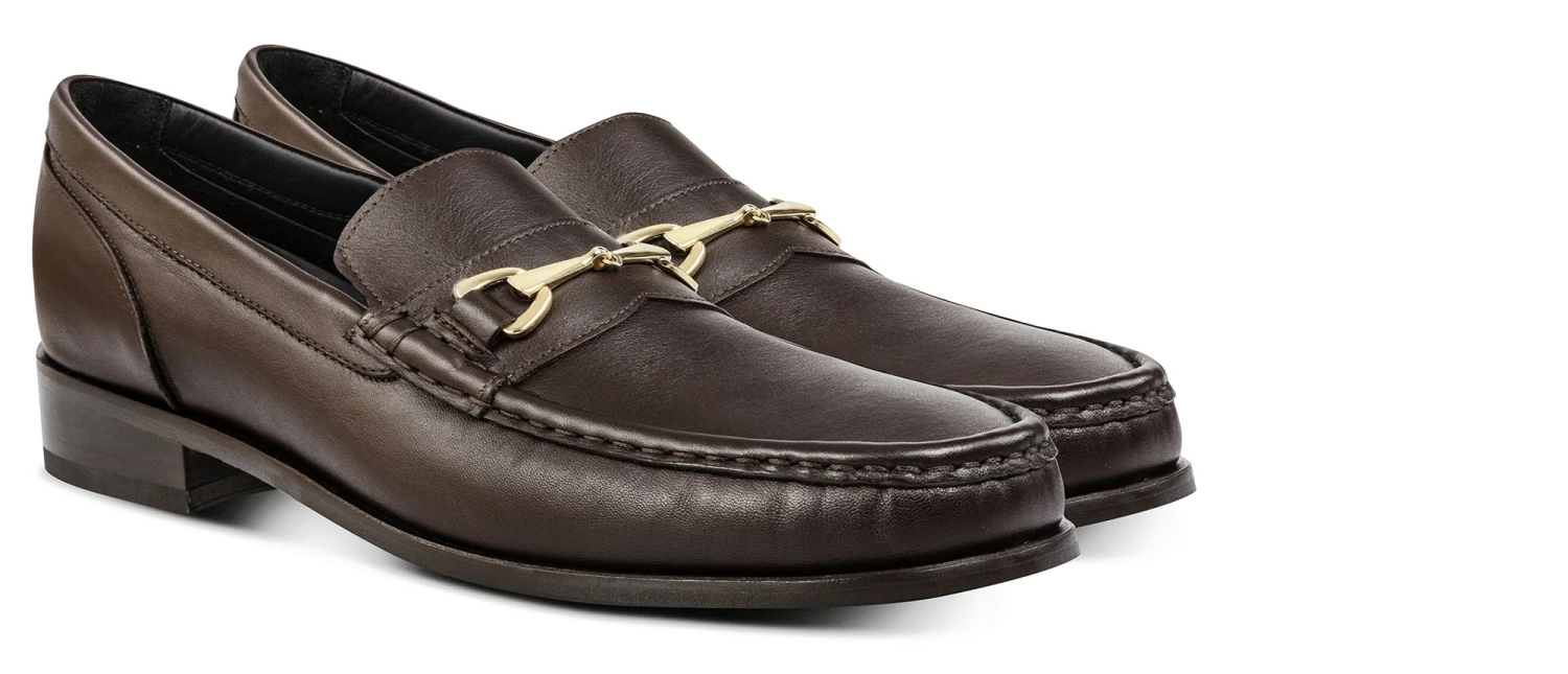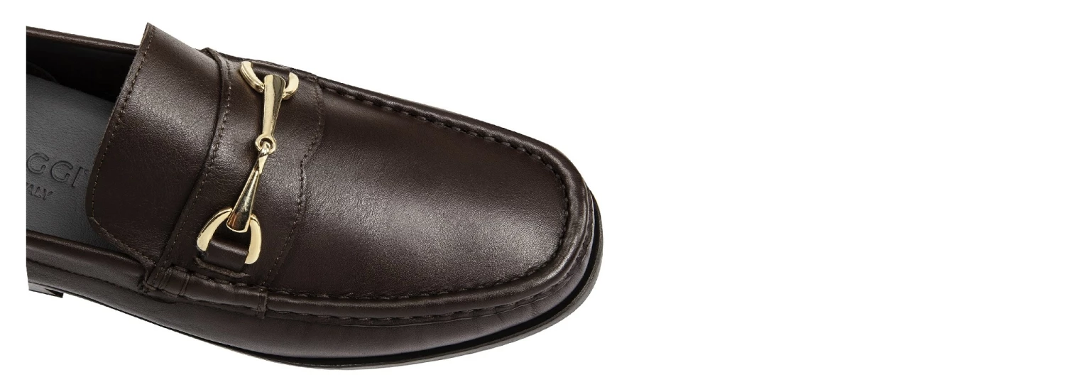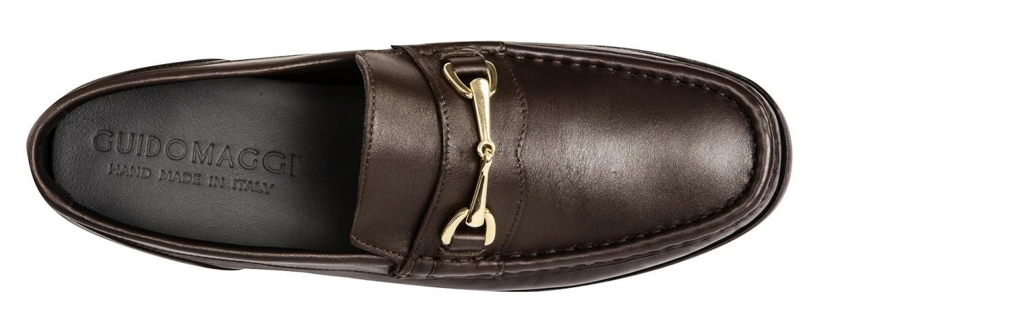 You’ll find the regal elegance of timelessness in this classic GuidoMaggi penny loafer with internal elevator system. Upper in dark brown full-grain leather and sole in the same colour, in 100% Italian leather.