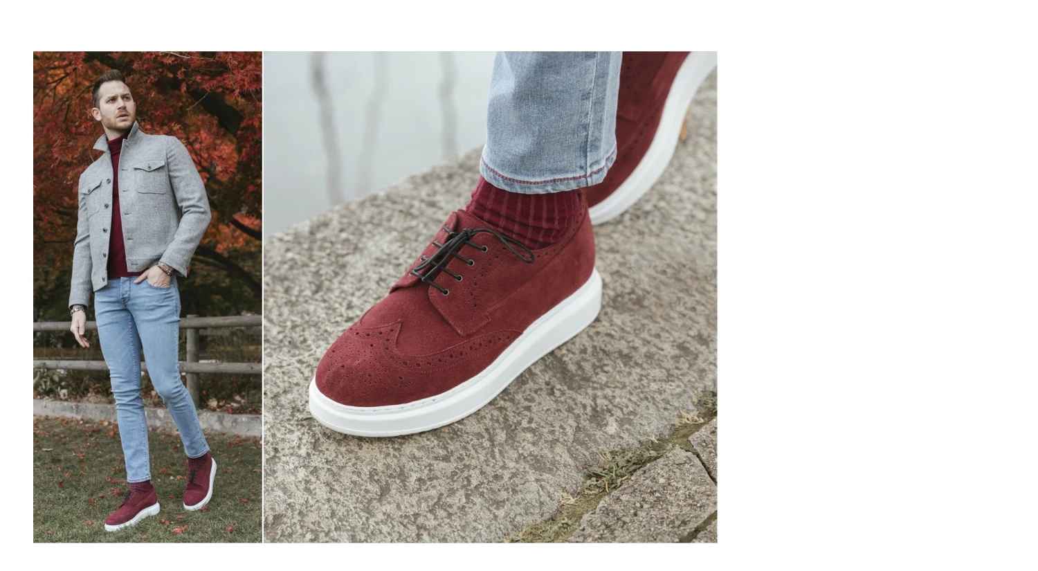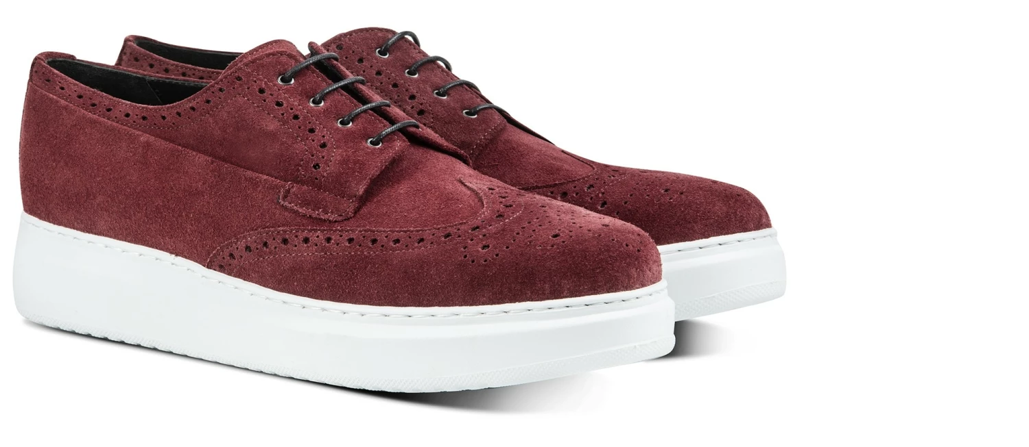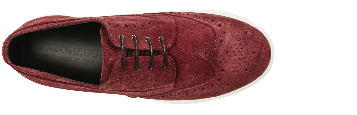 A Hybrid, halfway between sporty and classic shoes, the new elevator model signed by GuidoMaggi is characterized by the sneaker sole and the upper in suede calfskin with more traditional lines. A one-of-a-kind model, with handmade perforations, embellished with a flower on the toe and dovetail. Extremely comfortable, it gives up to 3.1 inches (8 cm) of extra height in total discretion. Handmade and made to measure in Italy
