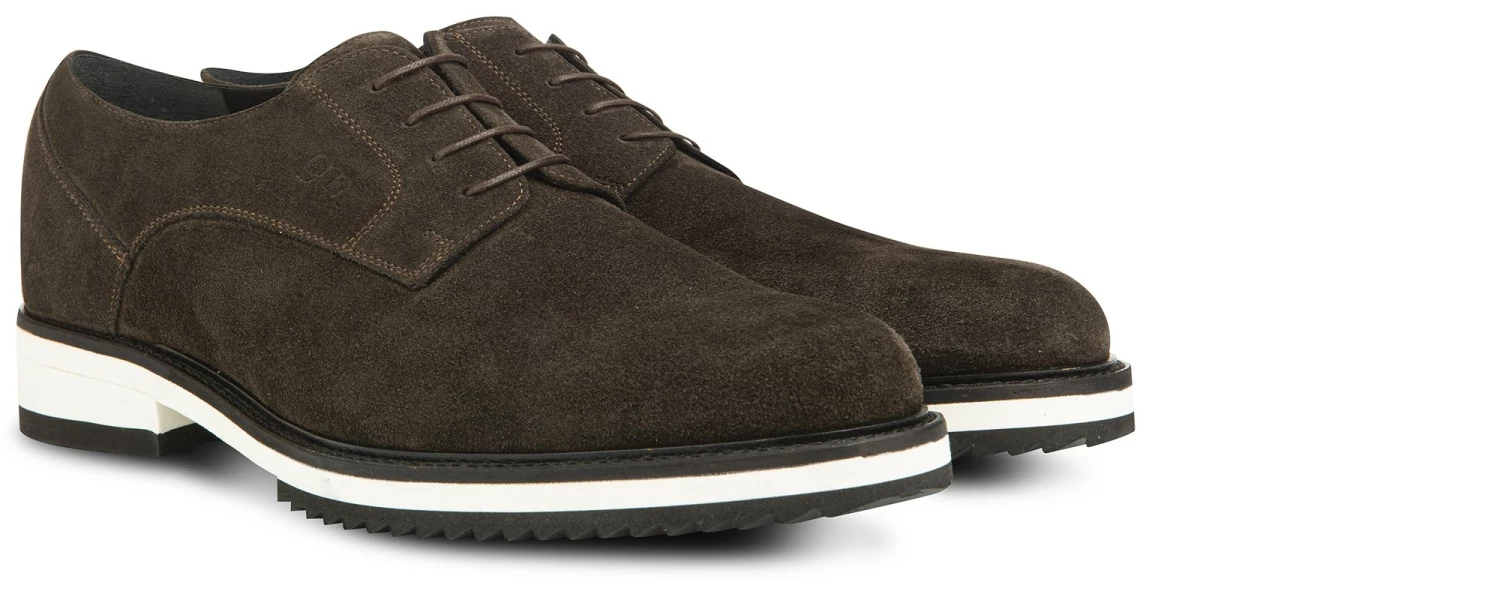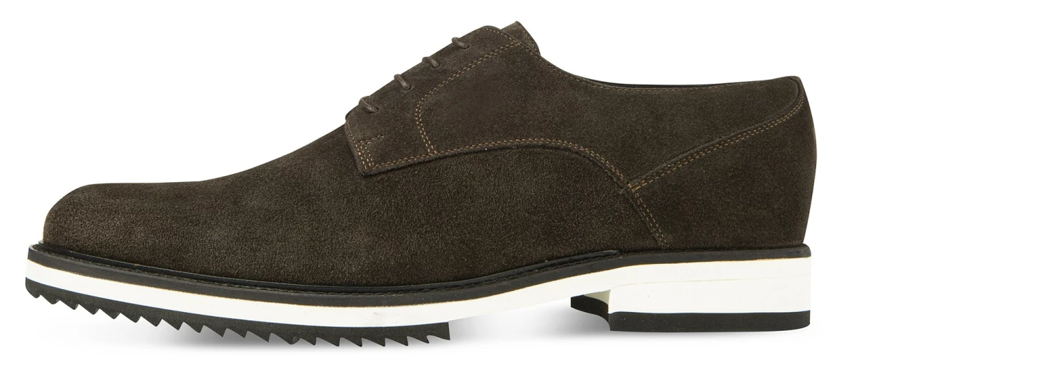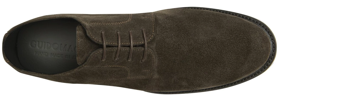 The class of the new GuidoMaggi elevator derby is unmatched in terms of design and artistry. The upper is an intense dark brown shade of soft suede calfskin. The details that make it even more exclusive, the trendy and super-light two-tone micro sole: here’s a comfortable shoe that can increase your height by up to 3.1”. Ideal for casual-chic outfits. Handmade in Italy.
