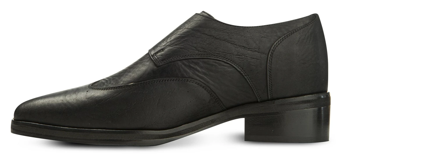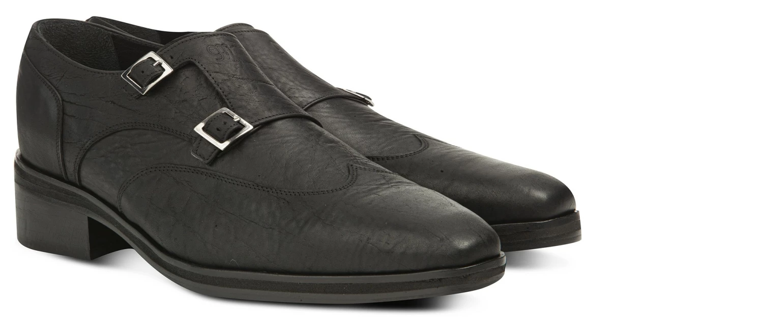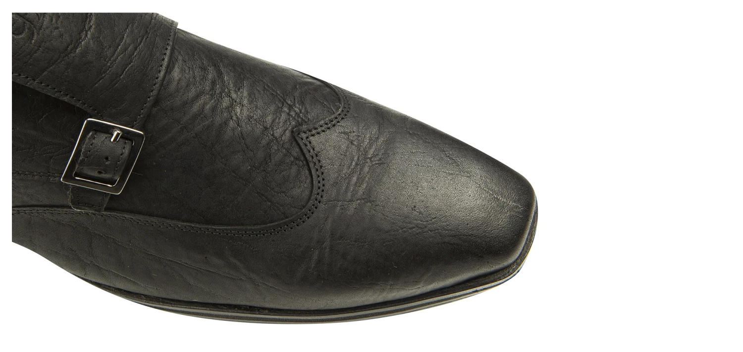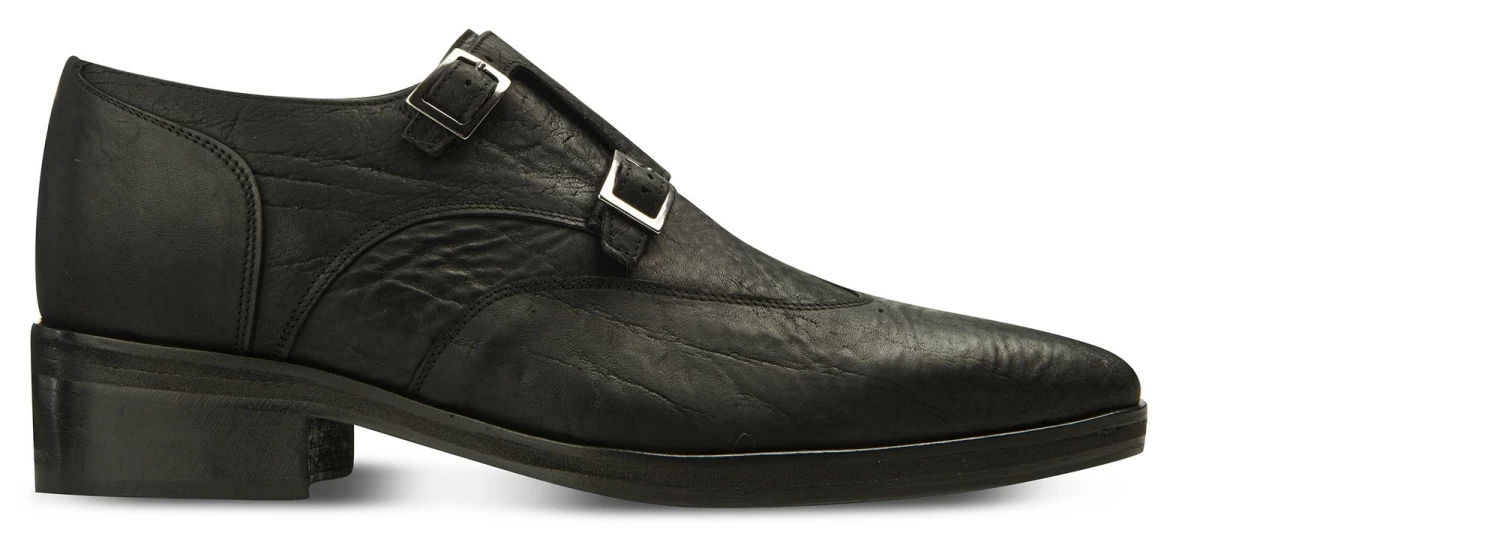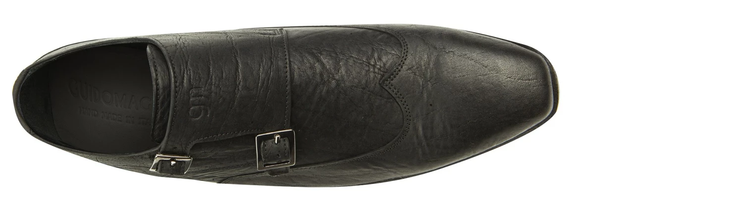 Here’s a total black double buckle, with upper in Tuscan nappa with a fascinating vintage effect. Soft to the touch, with curved lines, it is handmade and tailored by the skilled GuidoMaggi artisans. The sole is in 100% Italian leather. The lifting system adds up to 4.72″ of extra height. Ideal for formal outfits but also more casual-chic looks. Handmade in Italy.