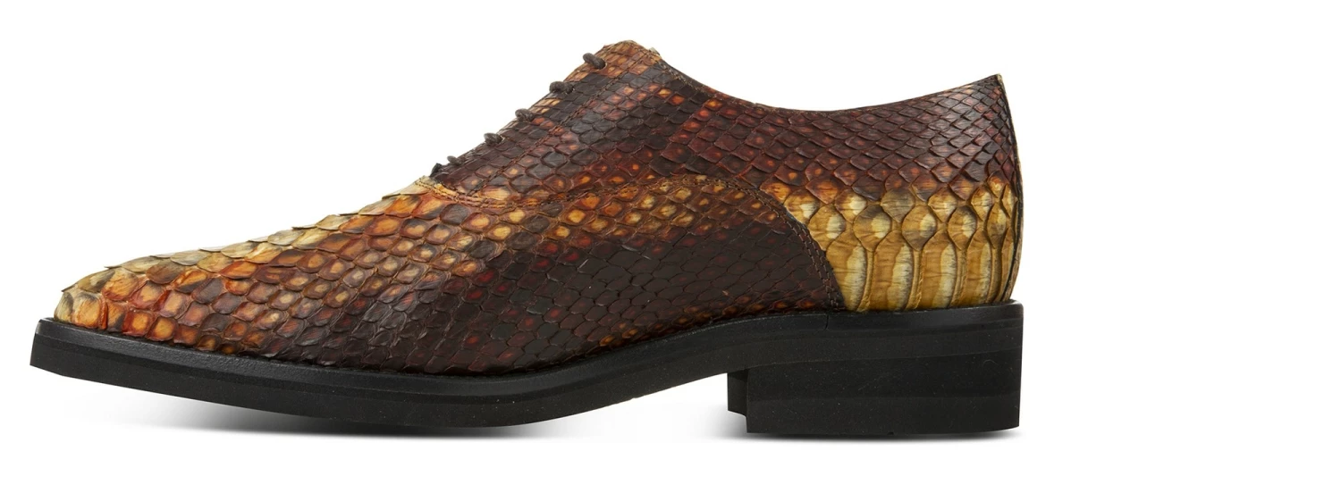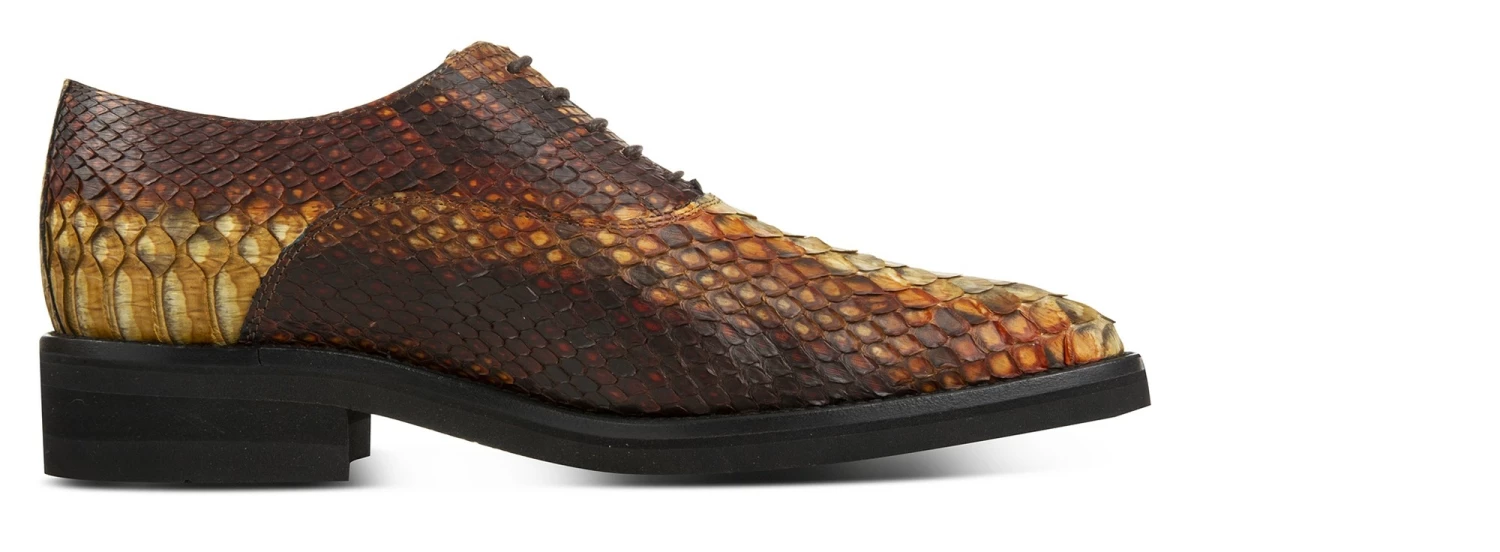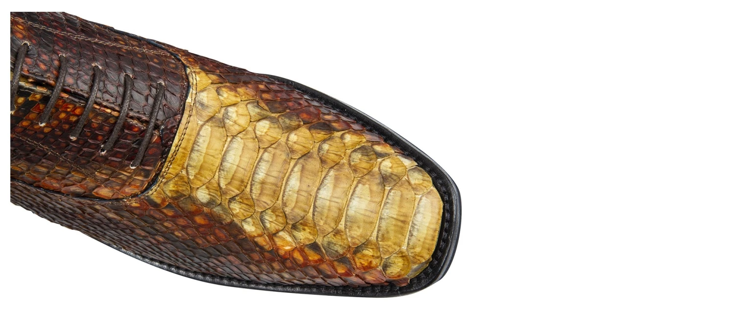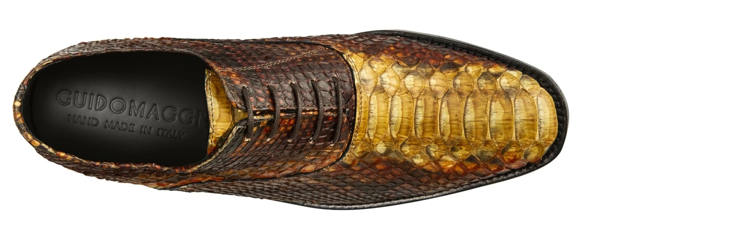 Being chic is a matter of character, and this luxury model has character to sell. The elevator brogues from the new GuidoMaggi collection is a one of a kind masterpiece of haute couture. The upper is made entirely of genuine python leather and plays on the earth’s enveloping tones, including shades of brown, rust and beige.