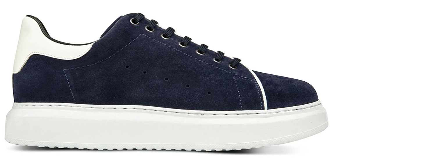 The new GuidoMaggi elevator sneakers are dynamic and discreet, but always under the banner of elegance. The sports shoes of the Lecce Maison go beyond, redefining the borders of the urban style. The upper, masterfully handcrafted by the brand’s skilled artisans, is in soft navy blue suede with white piping, while the spur is in white full-grain leather. The super-light sole is in white rubber. Ideal for sporty chic looks, it adds up to 3.1″ of extra height. Handmade in Italy.