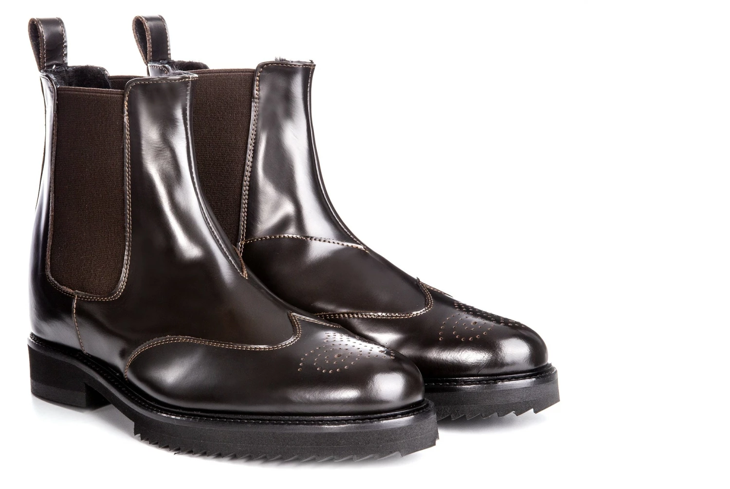 Upon request, the inner lining can be made of shearling, which will wrap the foot into a warm embrace, while always maintaining excellent breathability. A made in Italy excellence, tailor-made by the expert GuidoMaggi artisans, that can add 4 inches to your height.