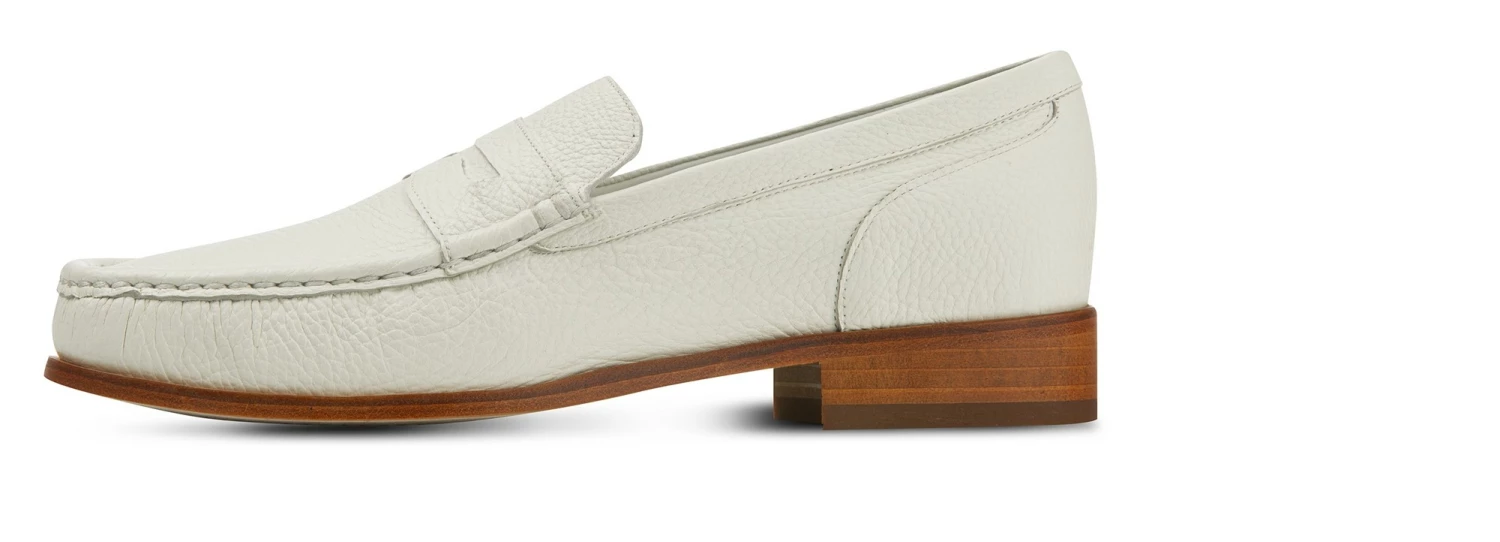 Sinuous lines and contemporary design for a timeless classic. The GuidoMaggi elevator moccasin is an exquisite, total-white shoe, ideal for seasonal casual-chic outfits.The upper is handmade in deer leather, soft and resistant. The brown contrasting sole is made of 100% Italian leather. It has a comfortable and discreet lifting system that adds up to 2.55″ of extra height. Handmade in Italy.