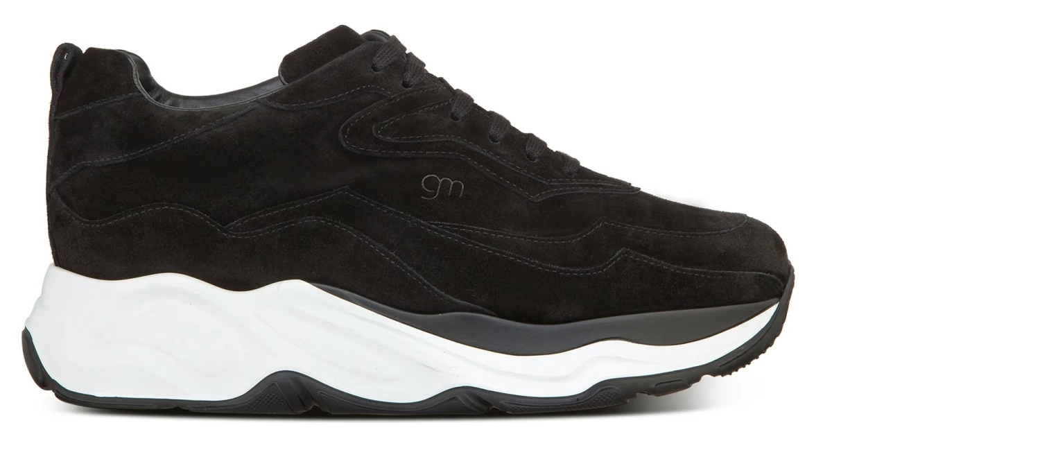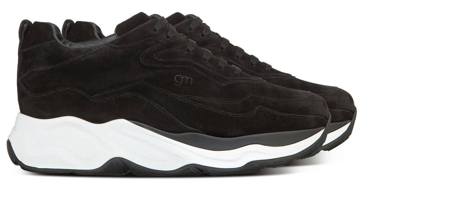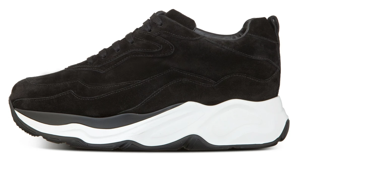 Back to black: chunky elevator sneakers with upper made of black suede leather. The white extralight rubber sole ensures maximum comfort.