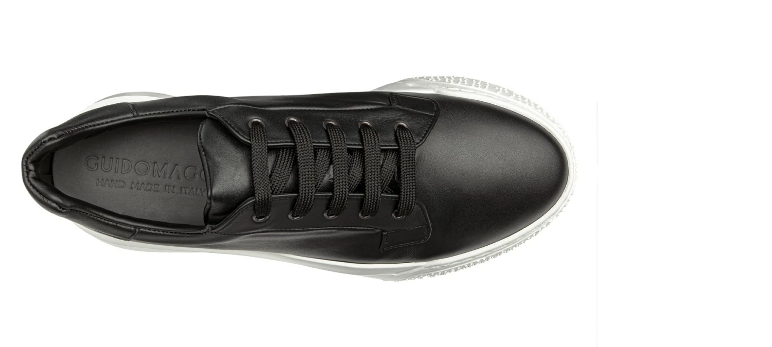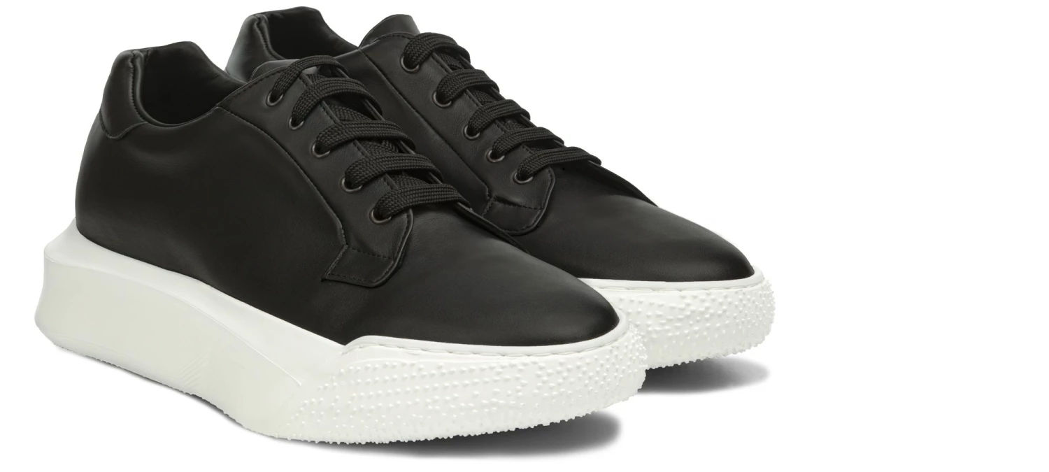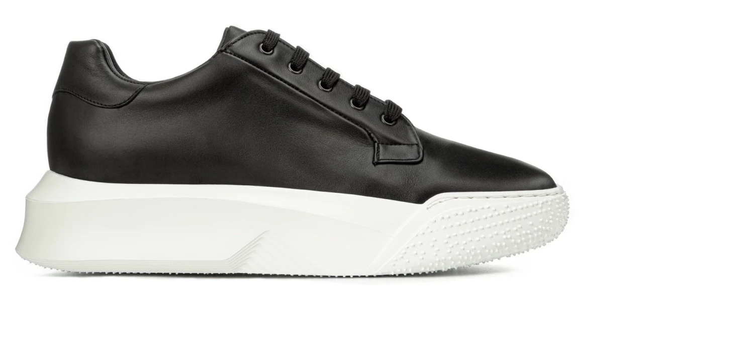 Elevator chunky sneaker able to increase height up to 4 inches (10 cm) in absolute comfort. The upper is in black full-grain leather with tone-on-tone laces.