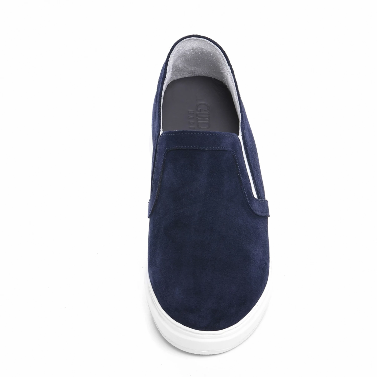 Height increasing Slip-on with upper in navy blue suede and comfortable rubber sole.