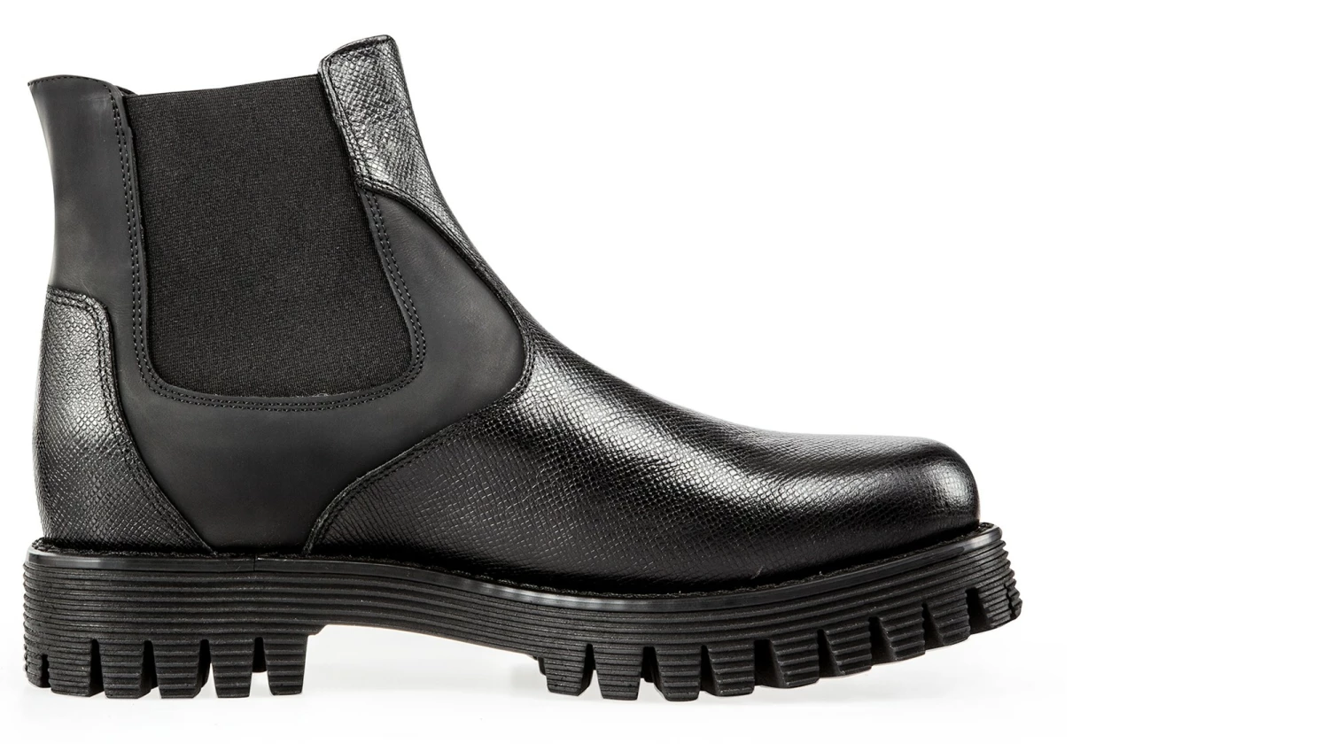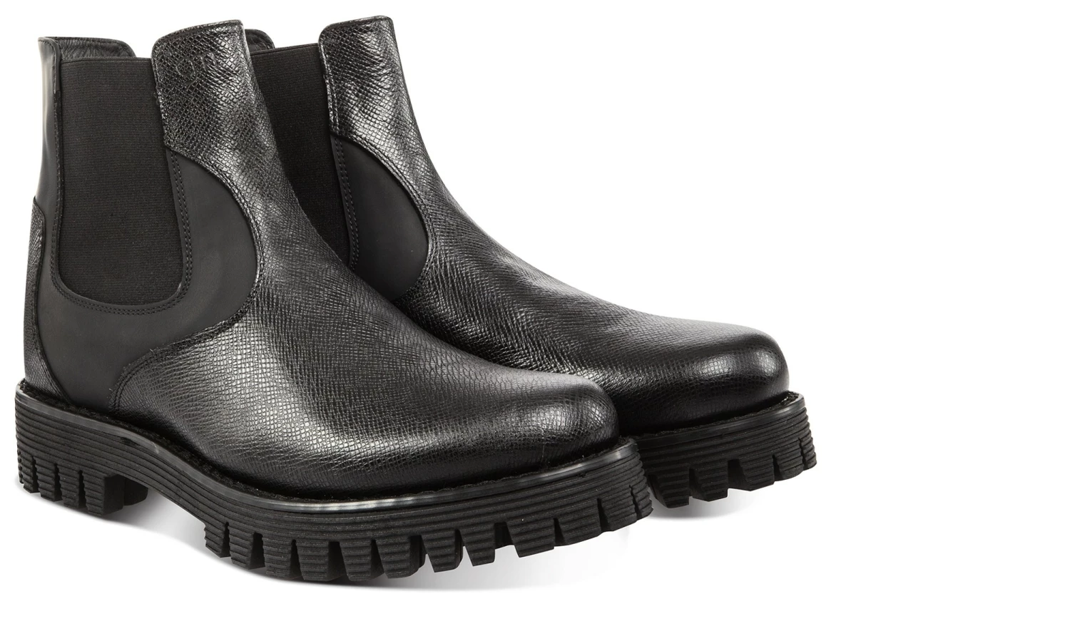 Total Black: modern version of the classic Beatle Boots with upper made of soft black Épi leather and tone-on-tone rubberized calfskin. The black sole is made of super light rubber.