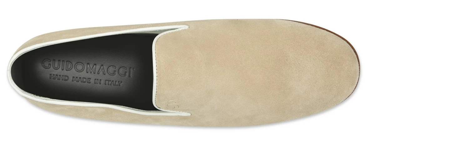 The new GuidoMaggi collection gets even better thanks to this elegant men’s loafer with clean lines and a contemporary design. The upper is in suede, in warm shades of beige.