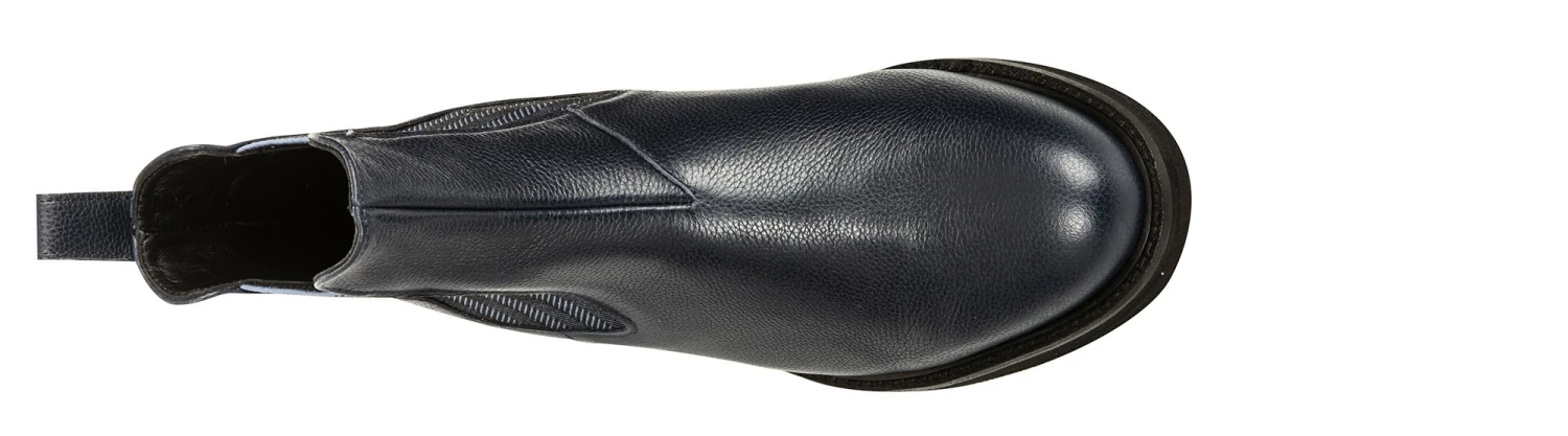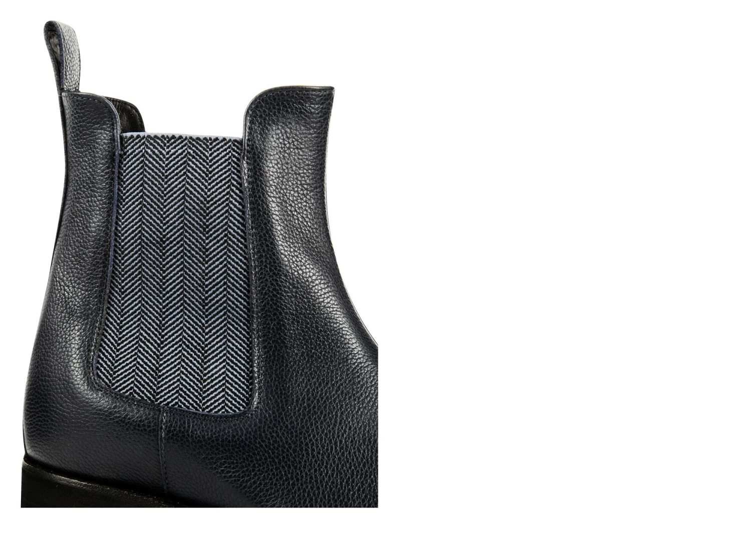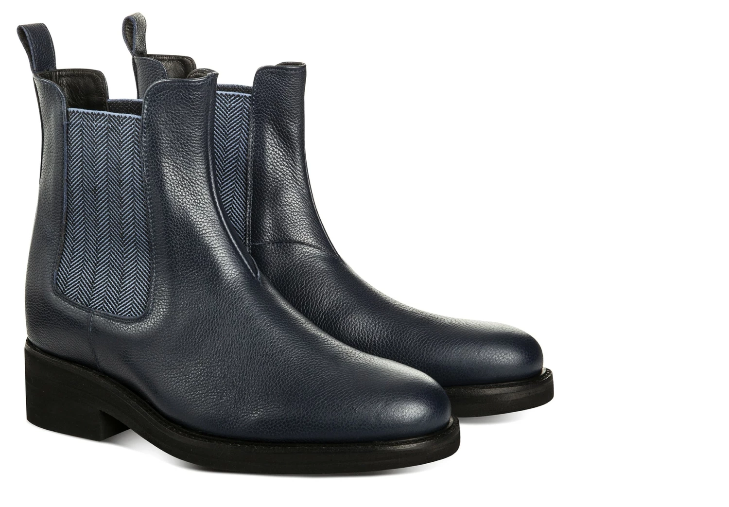 Chelsea elevator boot with upper in hammered leather with an enveloping blue nuance. The special processing emphasizes the leather’s high quality, giving style and elegance to this beautiful, handmade model.