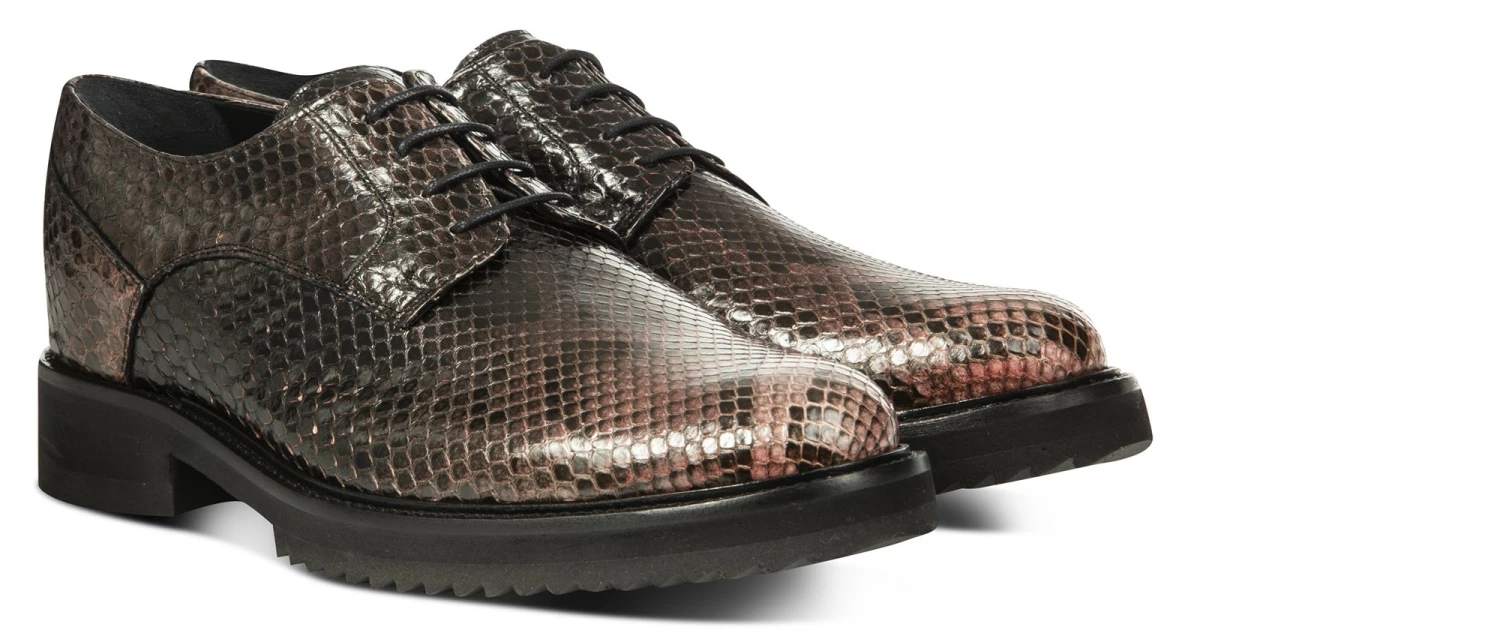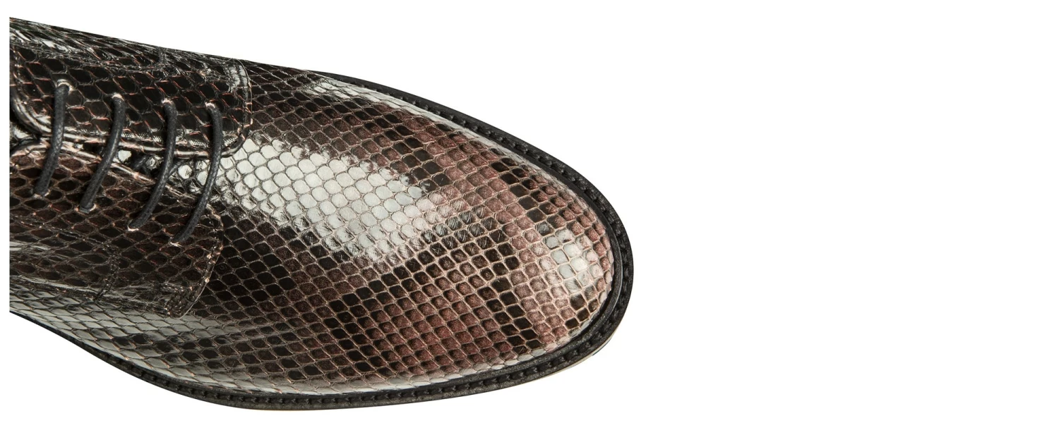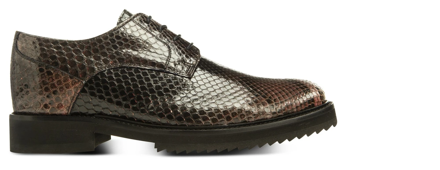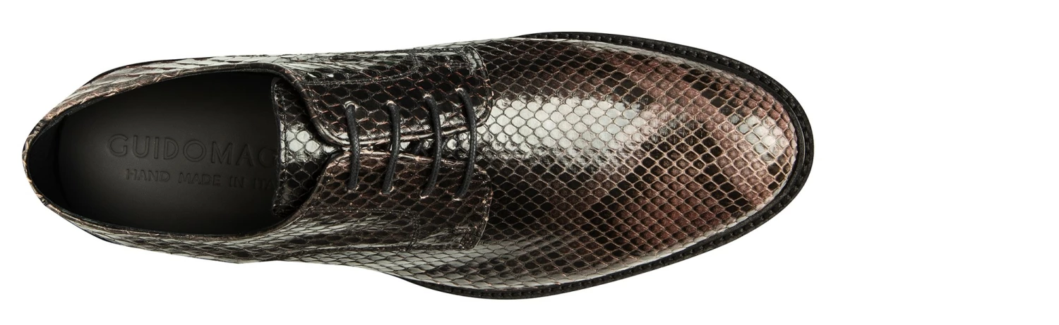 Luxury chic is the soul of this derby shoe, with a strong character and sophisticated lines. A masterpiece of style, handcrafted by the artisans of the Lecce fashion house, the GM elevator shoes have a genuine python front cut upper: exclusive, captivating and highly refined. An irresistible lifting model, also thanks to the warm nuance in shades of black with persuasive pink details. The sole is super comfortable rubber. Add up to 3.1″ to your height, in total comfort and discretion. 100% made in Italy.