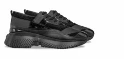 Total black elevator sneakers featuring a contemporary design characterized by a layered structured upper made using 4 skin leathers: rubberized leather, suede, brushed and tumbled calfskin. The street style-inspired sole is made of super-light natural rubber.