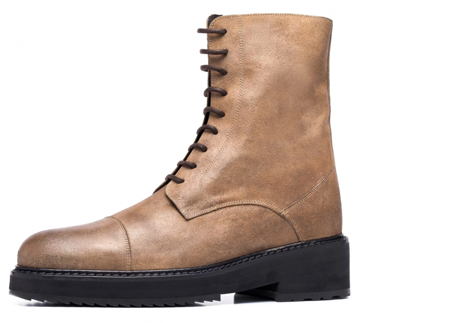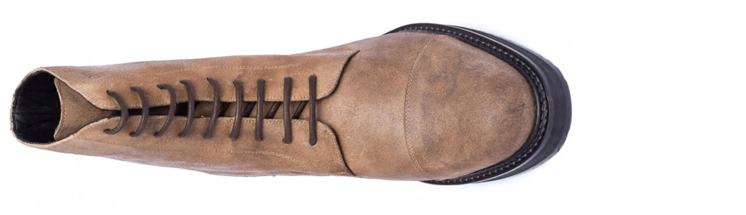 - Upper in waxed antique brown full grain leather