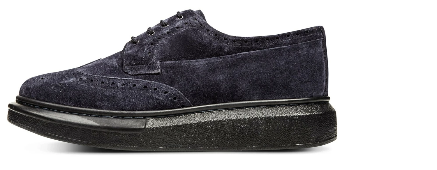 The touch of class is the derby lacing that defines its character and personality. The sole is in super-light rubber and the upper features a dark blue suede with dovetail decoration: ideal for any season’s casual chic outfit, Lee is able to give up to 3.1” inches (8 cm) of extra height. Handmade in Italy.
