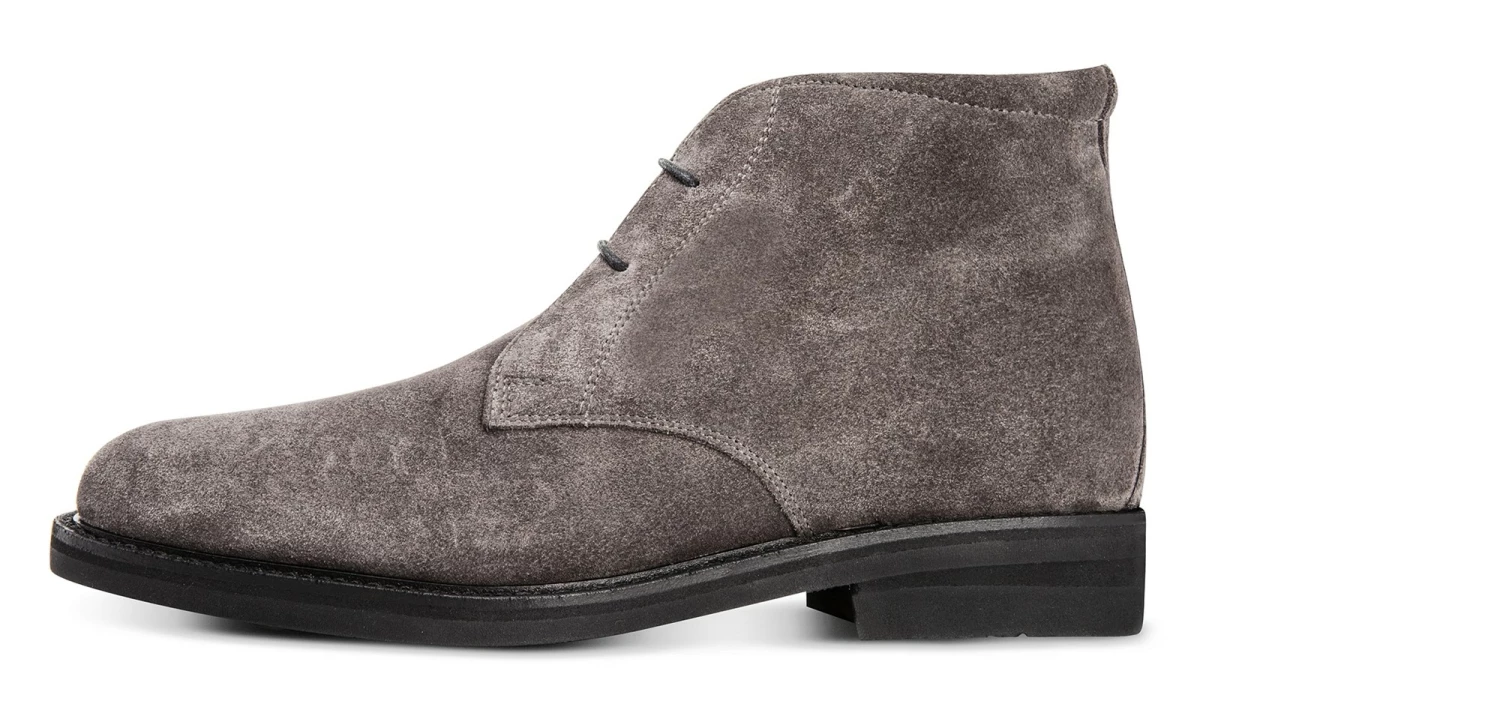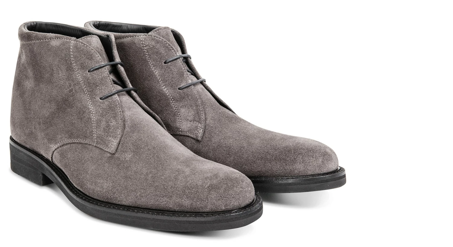 Classic elevator ankle boots handcrafted in ash brown suede calf leather and comfortable Vibram rubber sole.