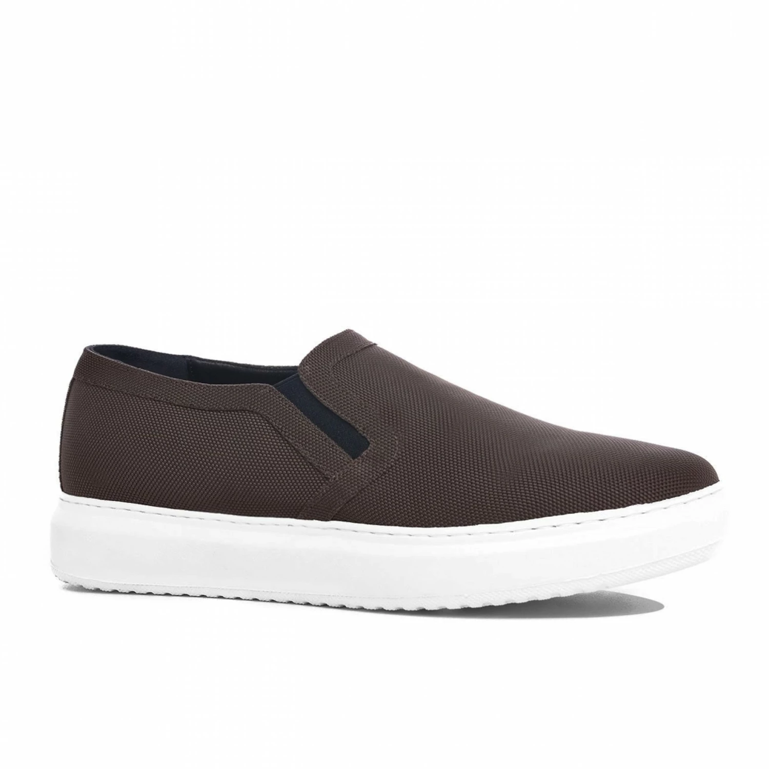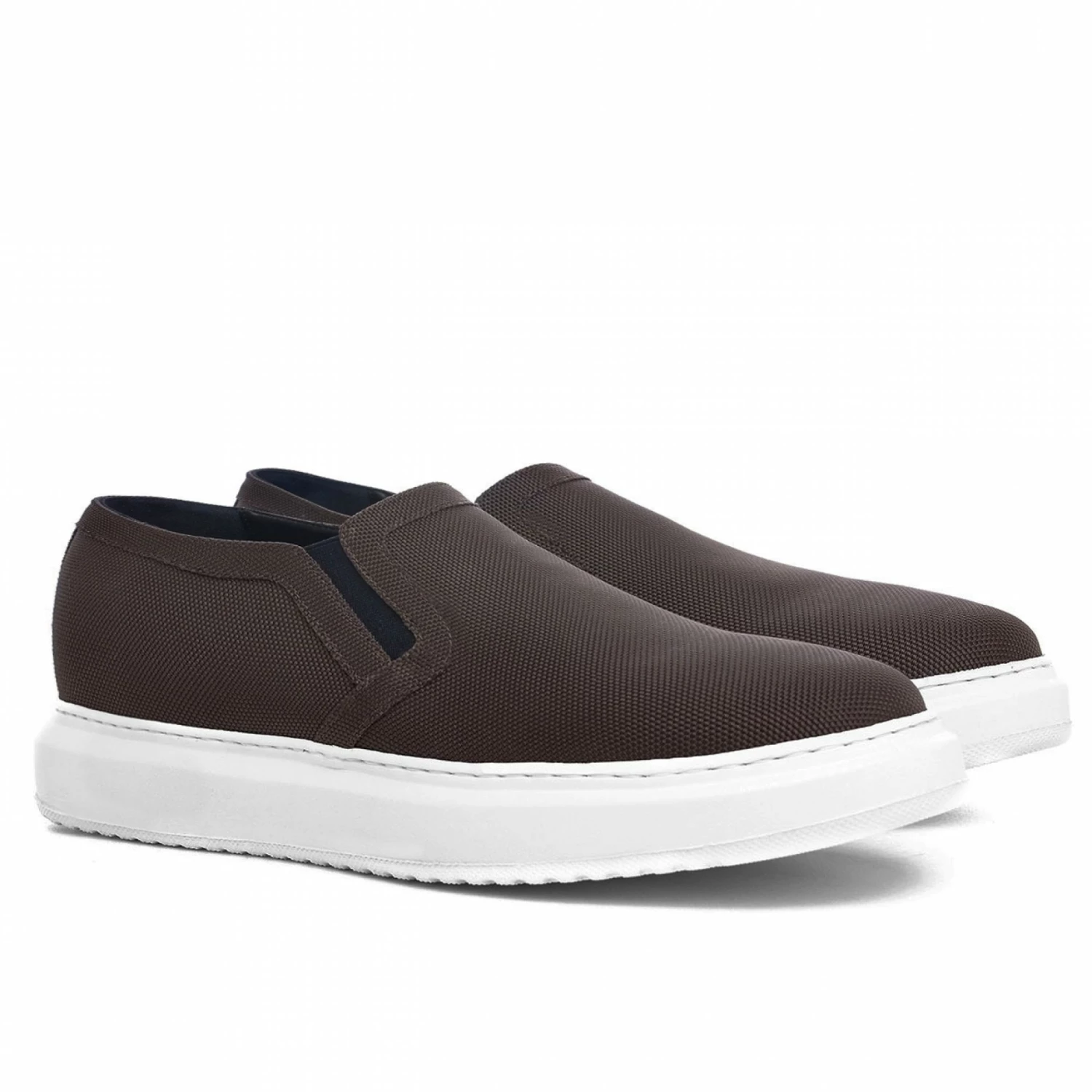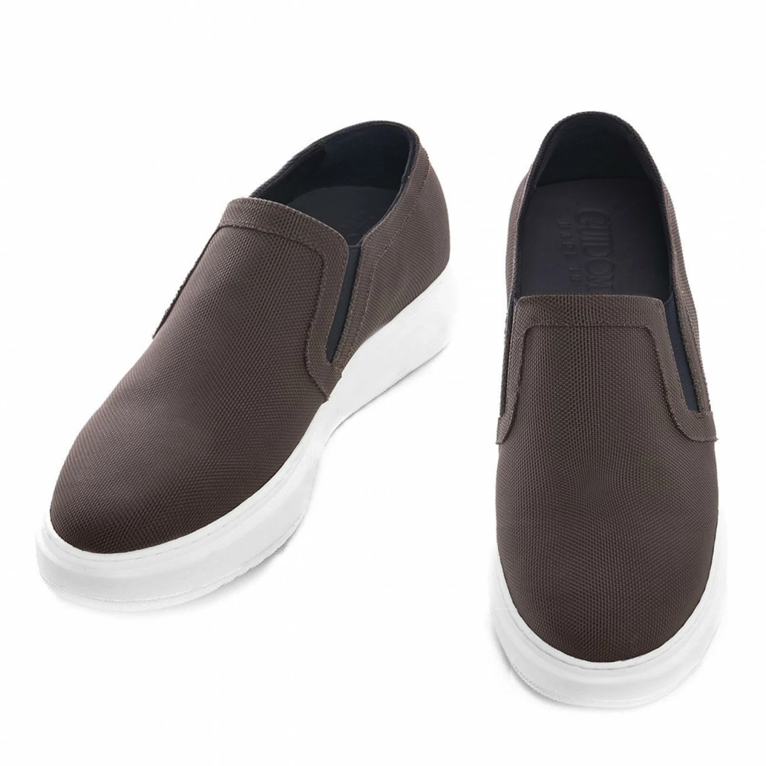 Elevator Slip-on with upper in breathable brown organic fabric, inner lining in soft leather and comfortable rubber outsole.