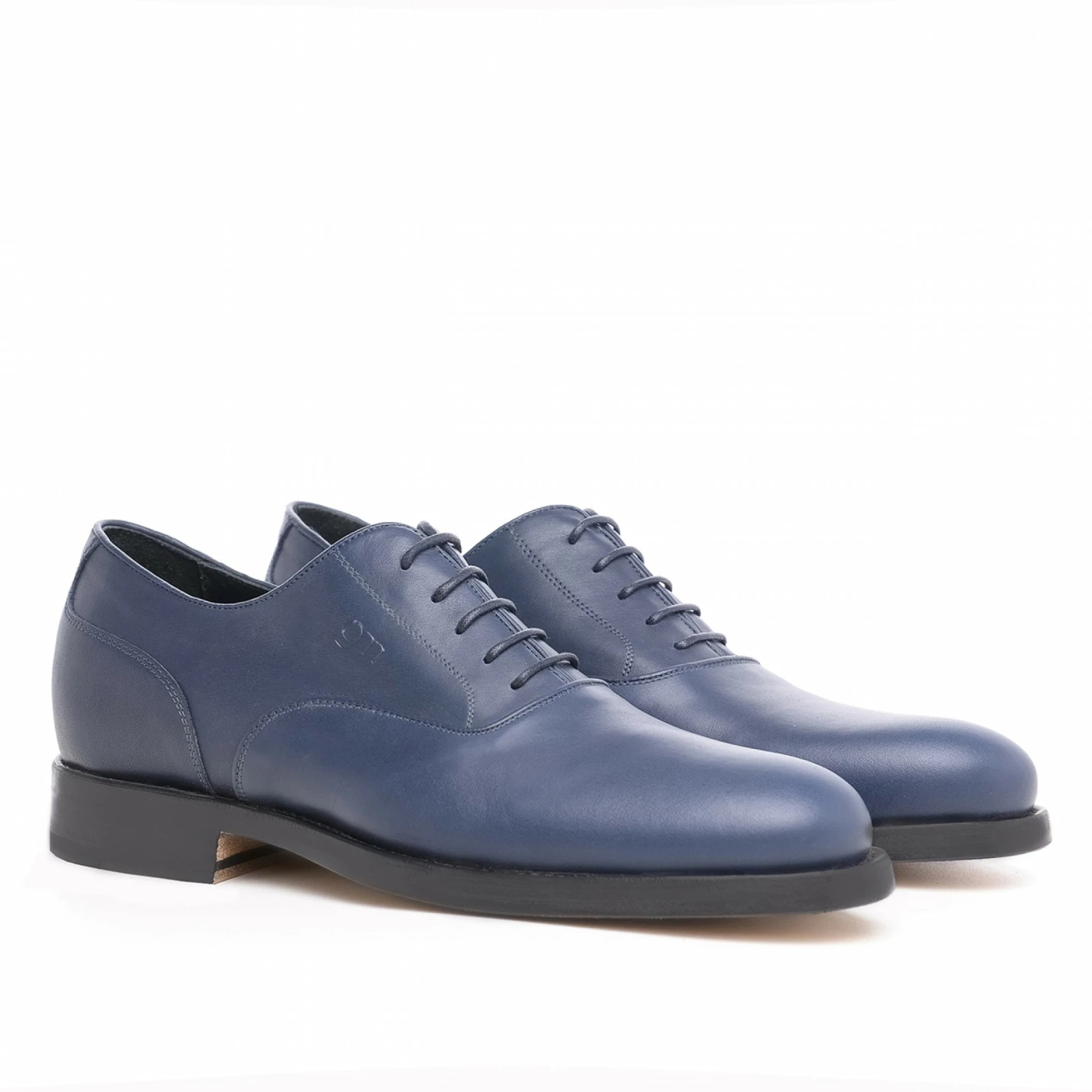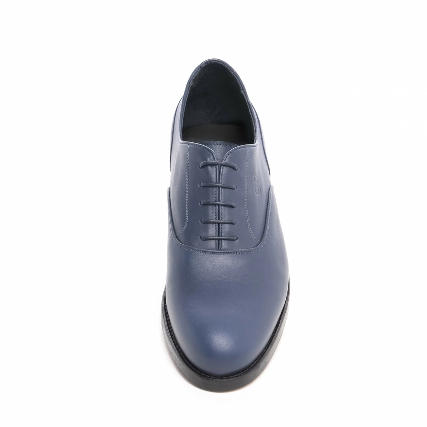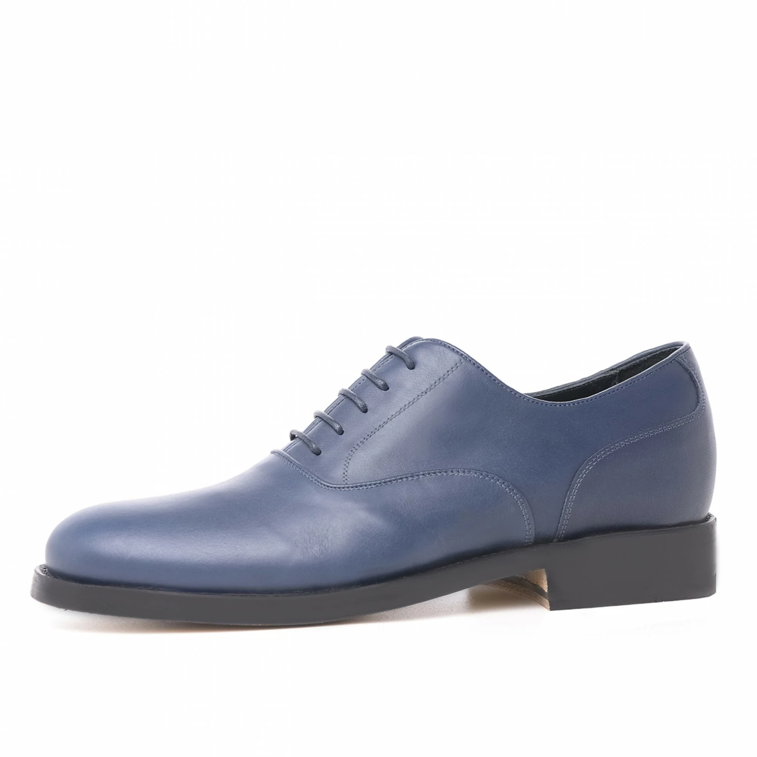 Handmade elevator dress shoe, with a refined upper in navy blue full-grain leather and real leather outsole.