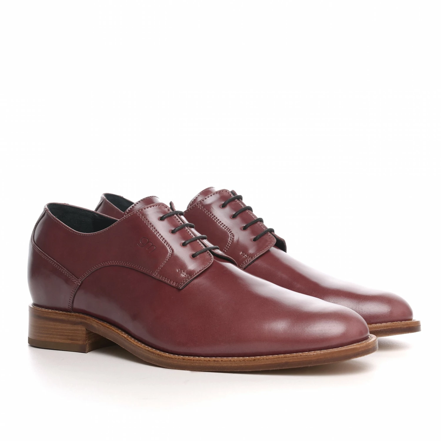 Elegant height increasing dress shoes with upper in burgundy cordovan leather distinguished by its natural shine and refinement.