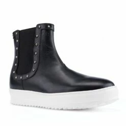Upper in studded full grain leather. Lining in soft goatskin. Insole and midsole in genuine leather. Dual elastic silk panel for an easy, comfortable fit. Ankle pull loop. Handcrafted, anti-slip rubber sole. Height increase: 2.4 in(6cm), 2.75in(7cm) or 3.1 in(8cm). Hand Made in Italy