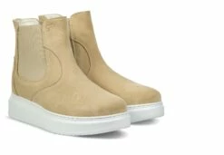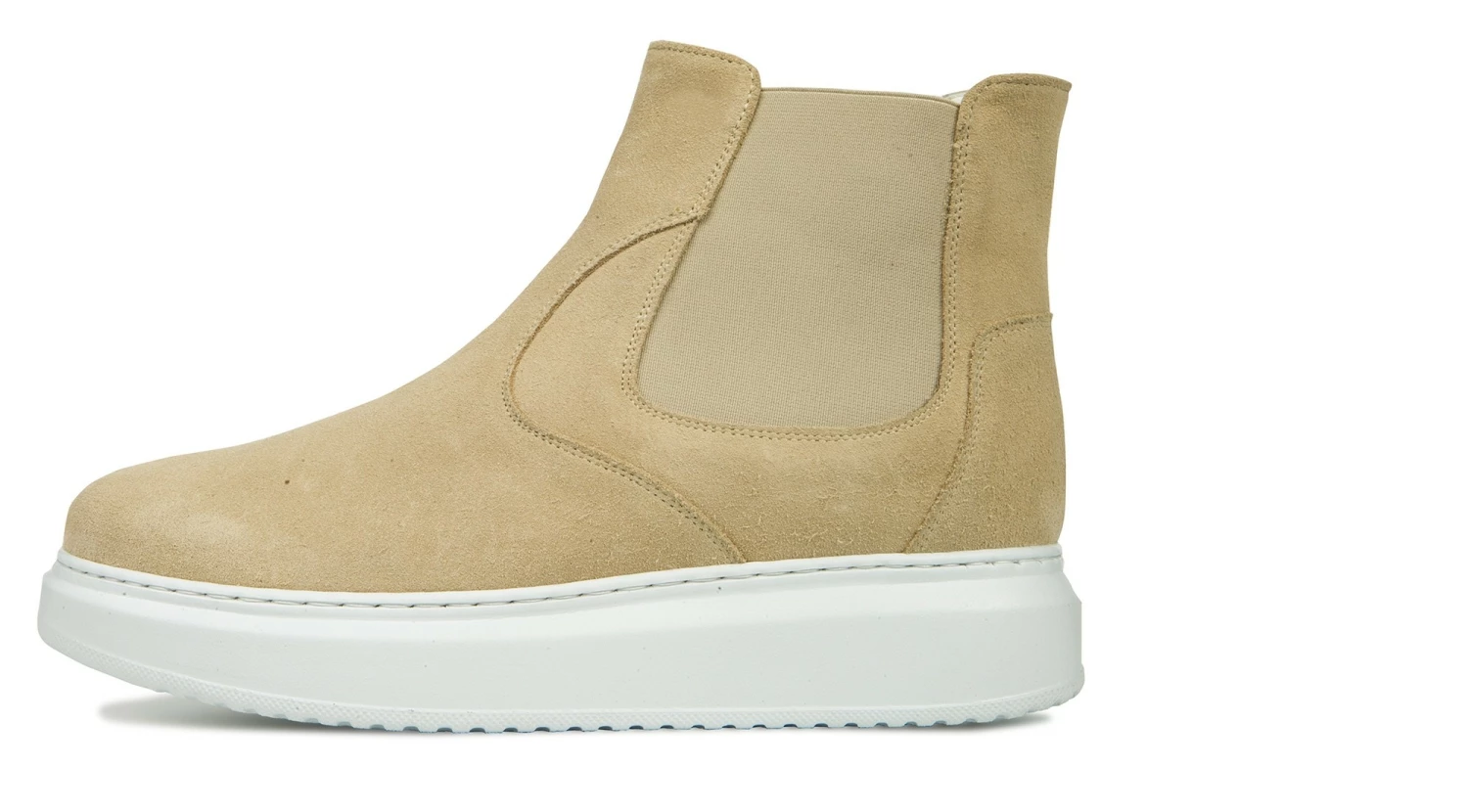 Be cool without sacrificing comfort: this is the spirit that animates the new GuidoMaggi elevator boot. In an innovative mix, the rounded lines of sneakers are combined with the exclusive design of an ankle boot. The result is a dynamic and trendy elevator shoe, extremely versatile and perfect for the casual-chic looks of the season. The handmade model has a taupe suede calfskin upper with matching elastics and adds up to 3.1″ of extra height. Handmade in Italy.