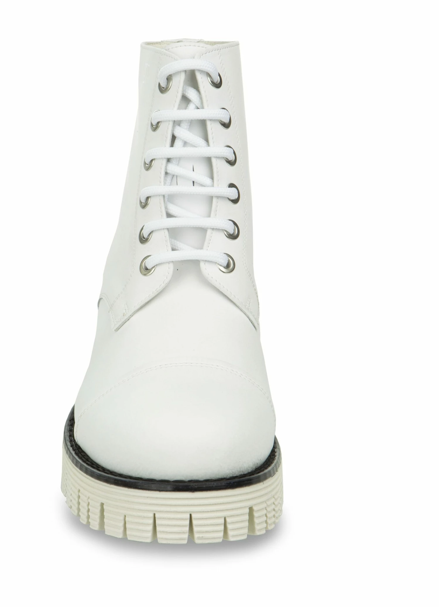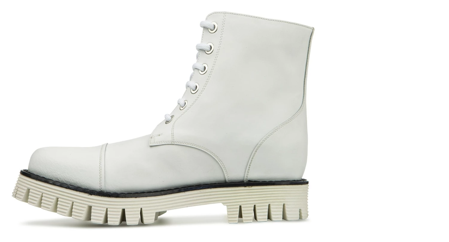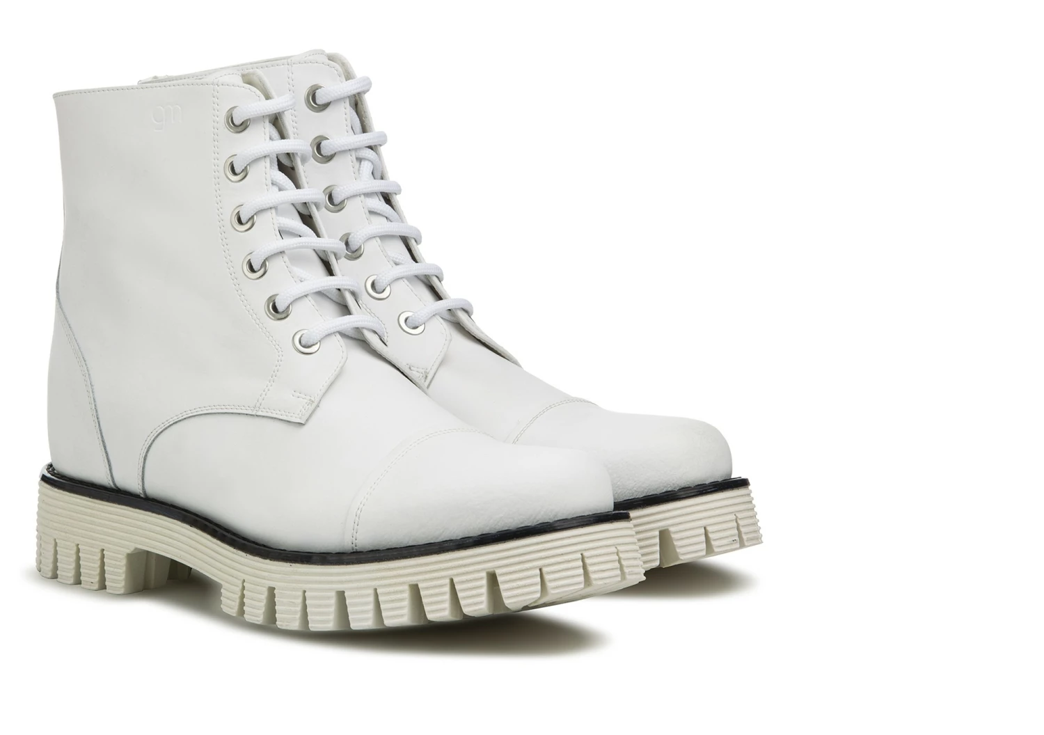 Exclusive elevator boots with upper made from white calf leather featuring a rubberized effect that makes them versatile, waterproof and breathable especially during the hottest months. The tone-on-tone striped sole with black welt is in ultralight rubber. A must-have that gives style and personality to any casual look, entirely handmade in Italy. This model is available with an internal elevator system to increase height from 2.4 (6 cm) up to 4 inches (10 cm).