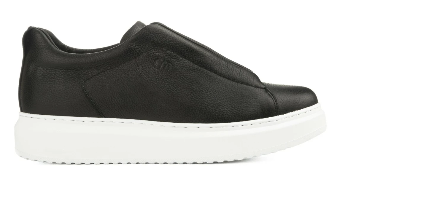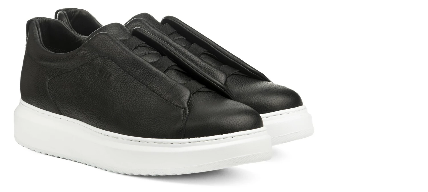 The upper is in black tumbled leather, extremely soft, with a super light sole in white contrast. The model has a discreet and comfortable elevator system that increases height by up to 3.1 inches (8 cm) . Handmade in Italy.