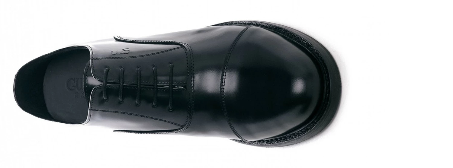 Elevator toe cap oxford shoe, handcrafted, with upper in full grain brushed calfskin of a luxurious semi-shiny effect. The real leather sole with anti slip rubber.is jointed and sewn at sight. The overall height increase ranges from 2.4 to 3.1 inches depending on the model chosen.
