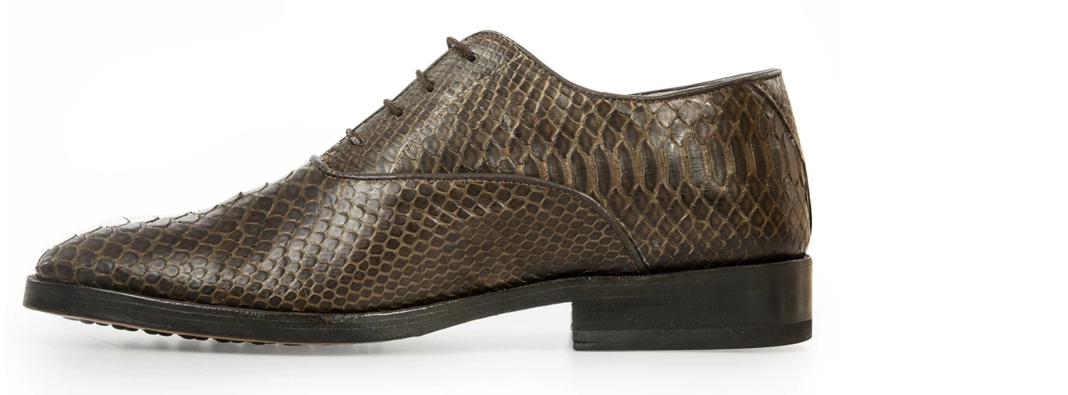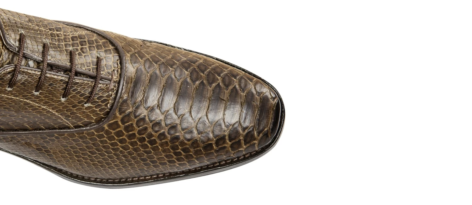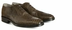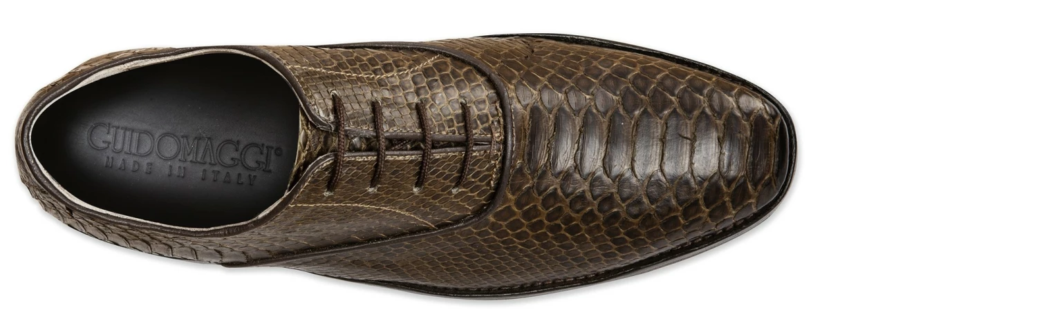 Luxury-chic elevator brogues made with upper in genuine python smooth leather skin featuring a sophisticated olive green nuance. A unique and exclusive masterpiece for your most elegant outfits, the GM collection’s new model is a men’s elevator shoe, created with attention to every detail by the maison’s master shoemakers.