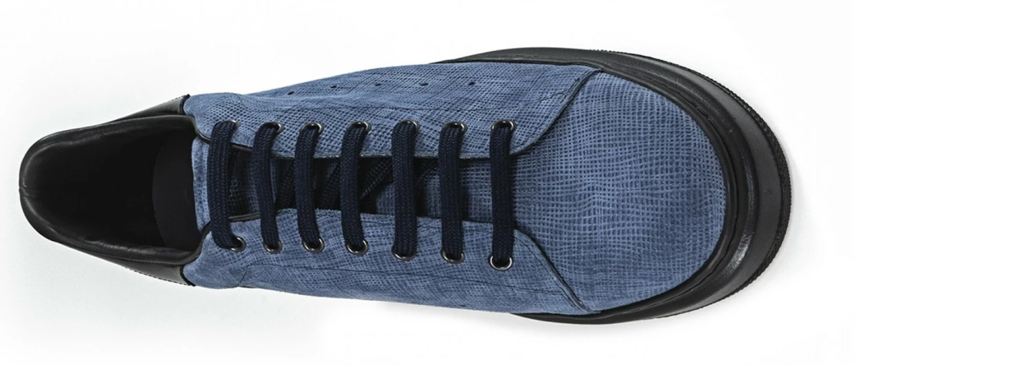 Elevator sneakers with upper in soft Épi blue leather and details in black shiny calfskin on the heel tab. The comfortable natural rubber sole ensures maximum comfort.