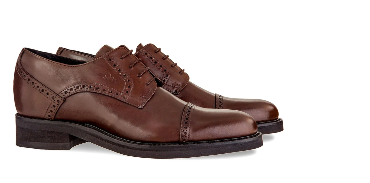 Refined lace up derby shoes with upper in dark brown calf leather and Vibram rubber sole that offers unparalleled comfort.