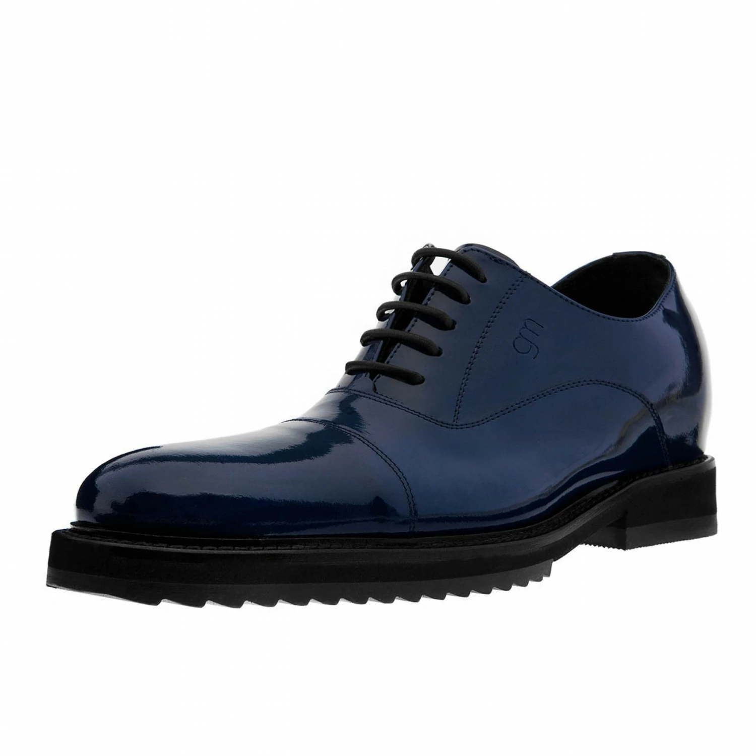 Distinctive and refined, the new “Napoli” Oxford shoes by Guido Maggi stand out for the brightness of the upper in calf blue patent leather.