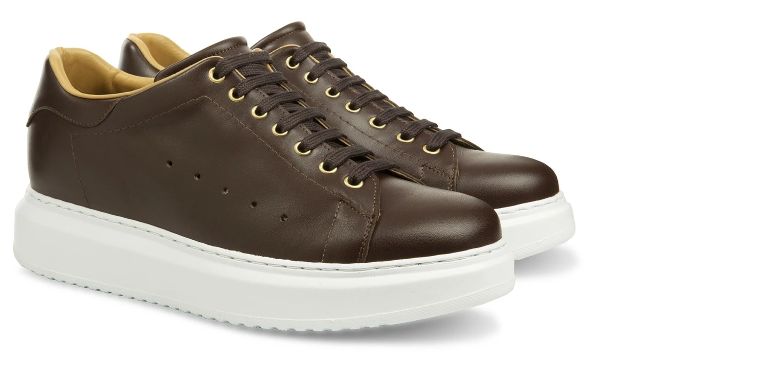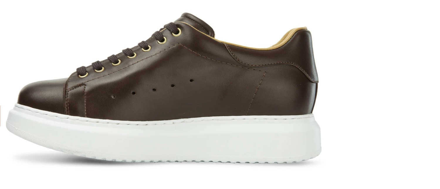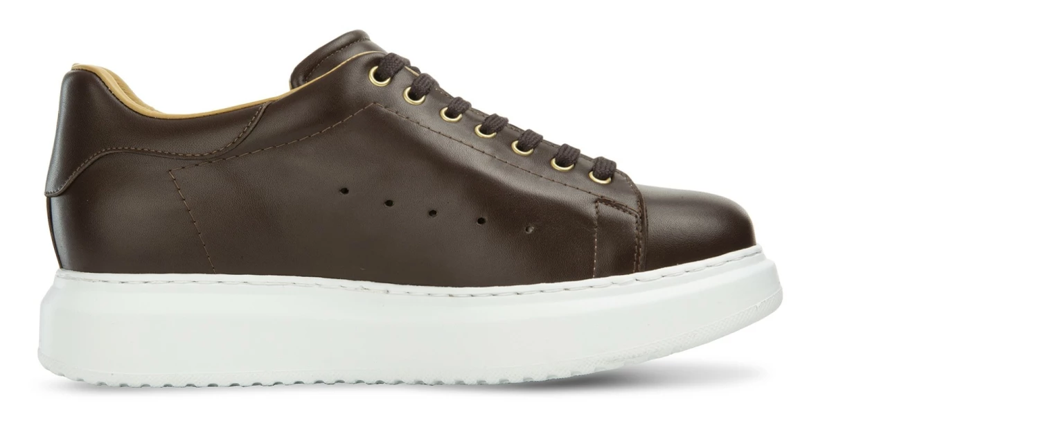Refined elevator sneakers with upper in full-grain brown leather and white sole in super-light natural rubber that ensures maximum comfort.