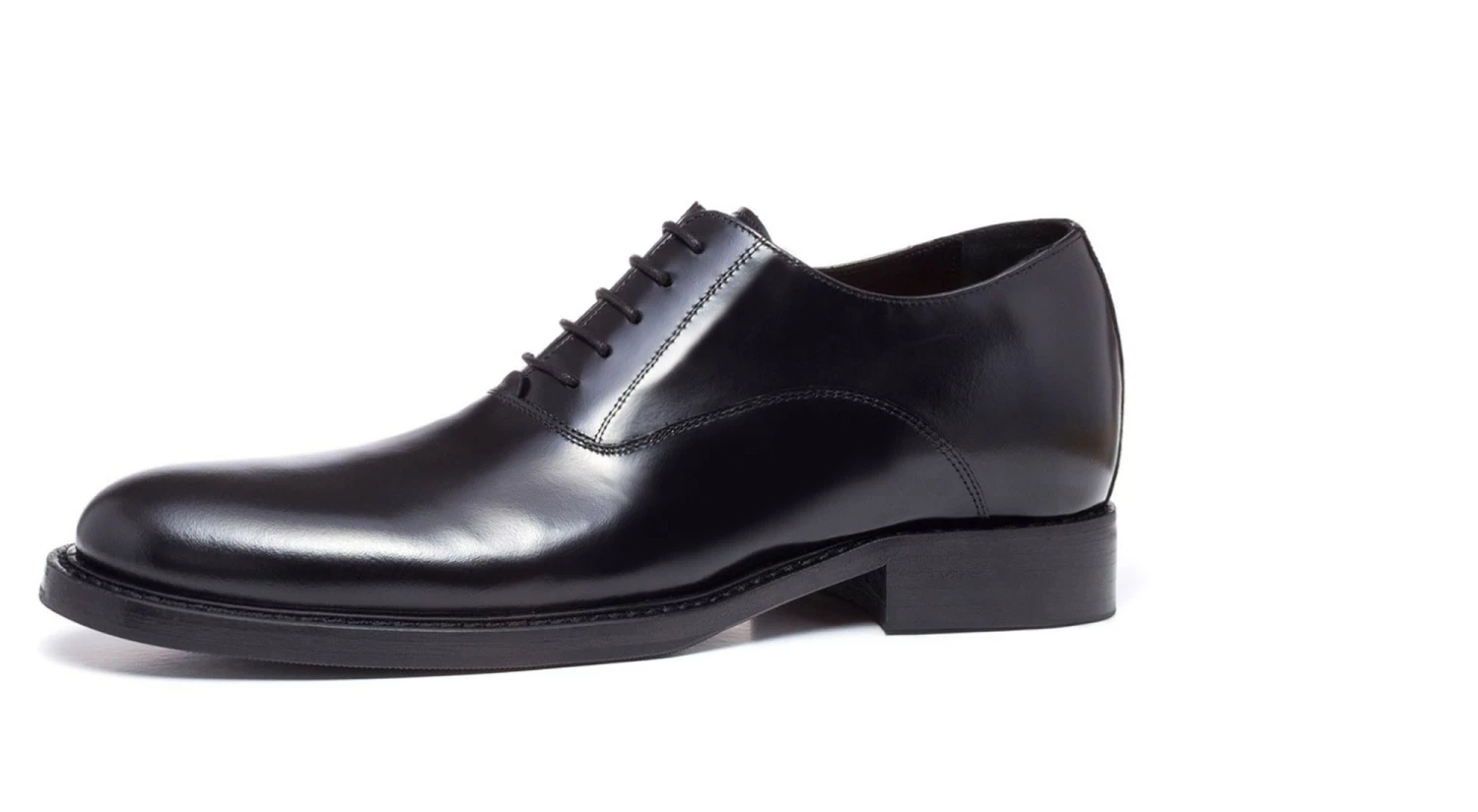 Elegance and clean lines for this handmade elevator dress shoe in full grain brushed calfskin with a luxurious semi-shiny effect. The real leather outsole is joined and sewn at sight. The total inner height increaser can be chosen from 2.4 up to 3.1 inches.
