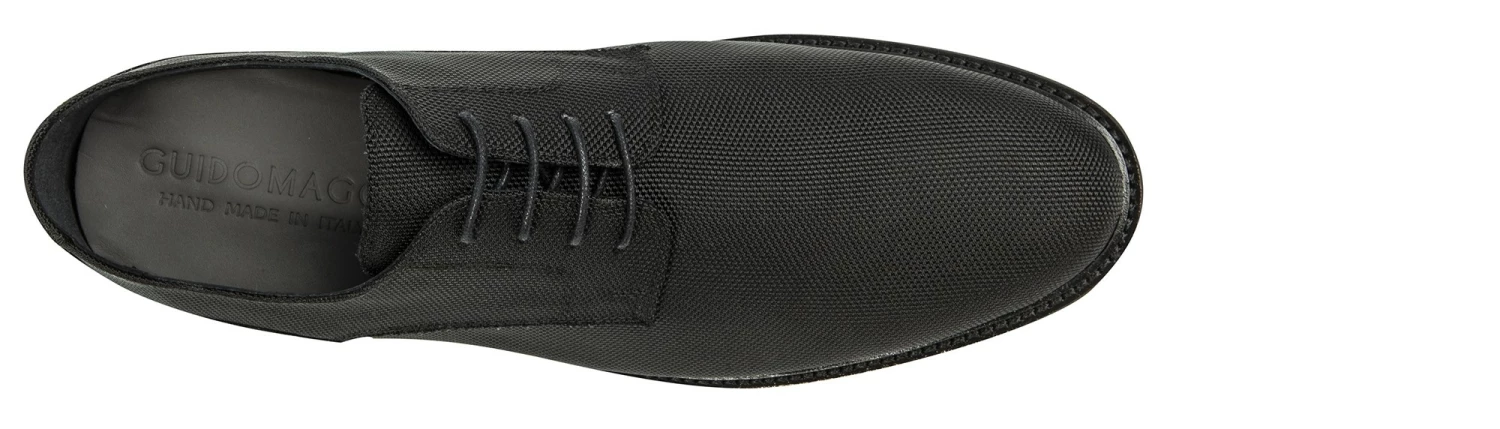 An iconic model revisited in a contemporary way: this is the new elevator Derby from the FW 2020/2021 collection by GuidoMaggi. The upper is made using an innovative, breathable and resistant fabric. The two-tone sole brings a captivating combination to life: white with a black base. Suitable for urban, dynamic, but always sophisticated looks, it has a lifting system that adds up to 3.1″ in total comfort. 100% Made in Italy.