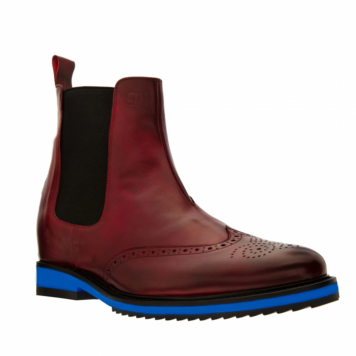 Upper in bordeaux red full grain leather. Lining in soft goatskin. Insole and midsole in genuine leather. Dual elastik silk panel for an easy, comfortable fit. Ankle pull loop. Handcrafted, anti-slip rubber sole. Height increase: 2.4 in(6cm), 2.75in(7cm) or 3.1 in(8cm). Hand Made in Italy